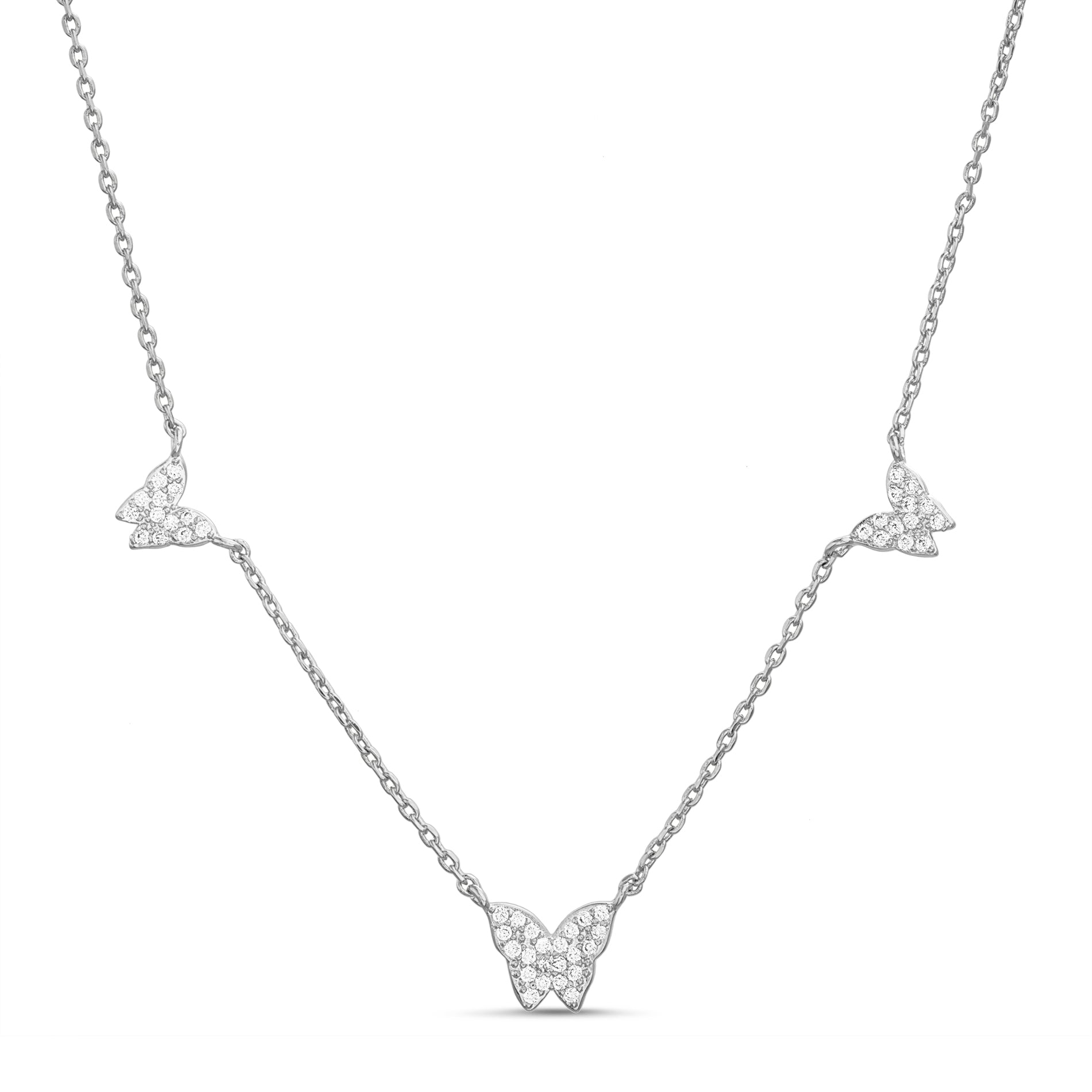Silver CZ Pavé Butterfly Necklace