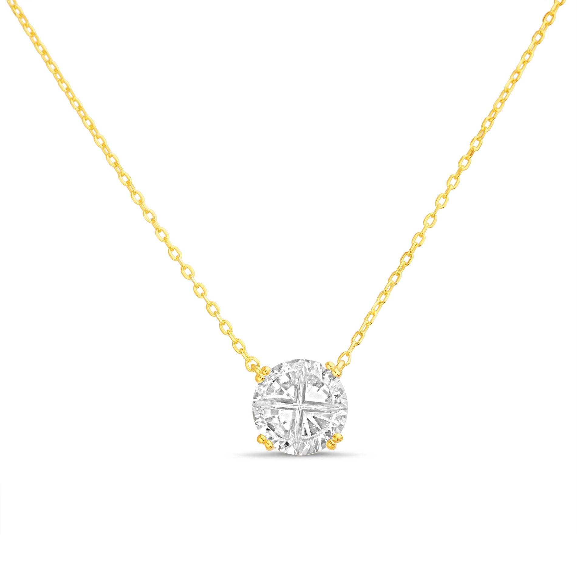 Sterling Silver Gold Clear CZ on Cable Chain Necklace