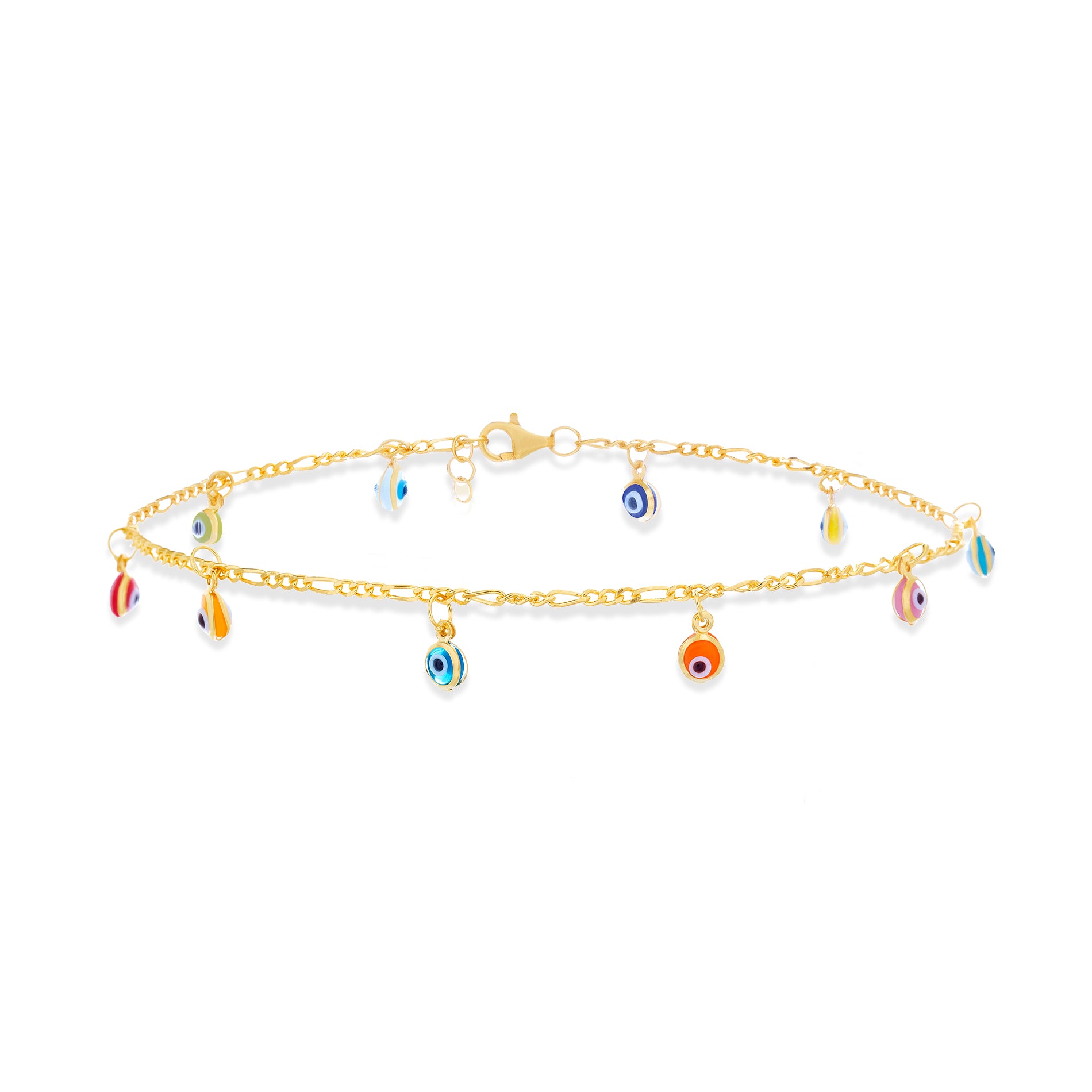 Sterling Silver Glass Multicolored Figaro Chain Anklet