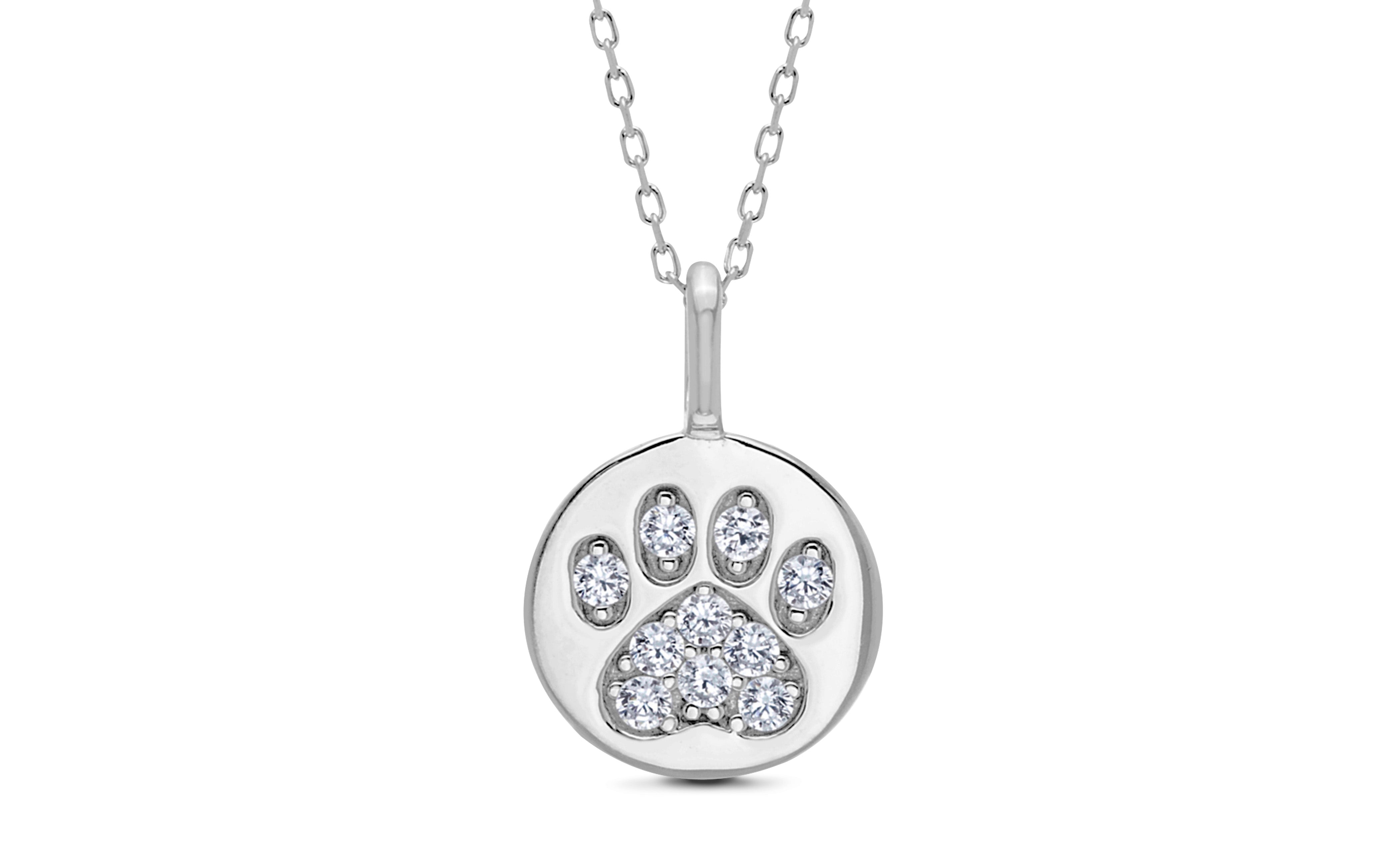 Sterling Silver Rhodium Paw Print & Simulated Diamond Round Pendant 16"+2" Chain Necklace