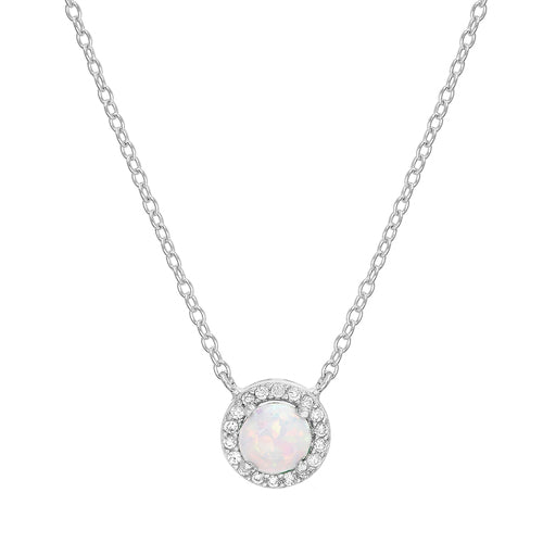 Sterling Silver Opal Halo Necklace