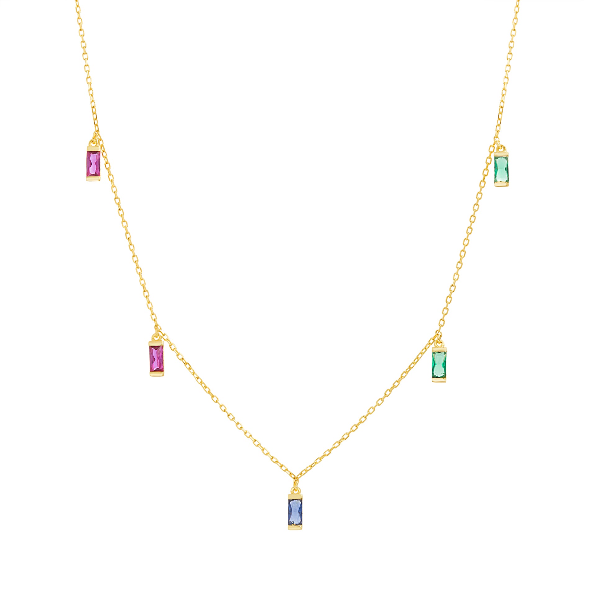 Sterling Silver Gold Multicolored Baguette CZ Dangle 16"+2" Chain Necklace