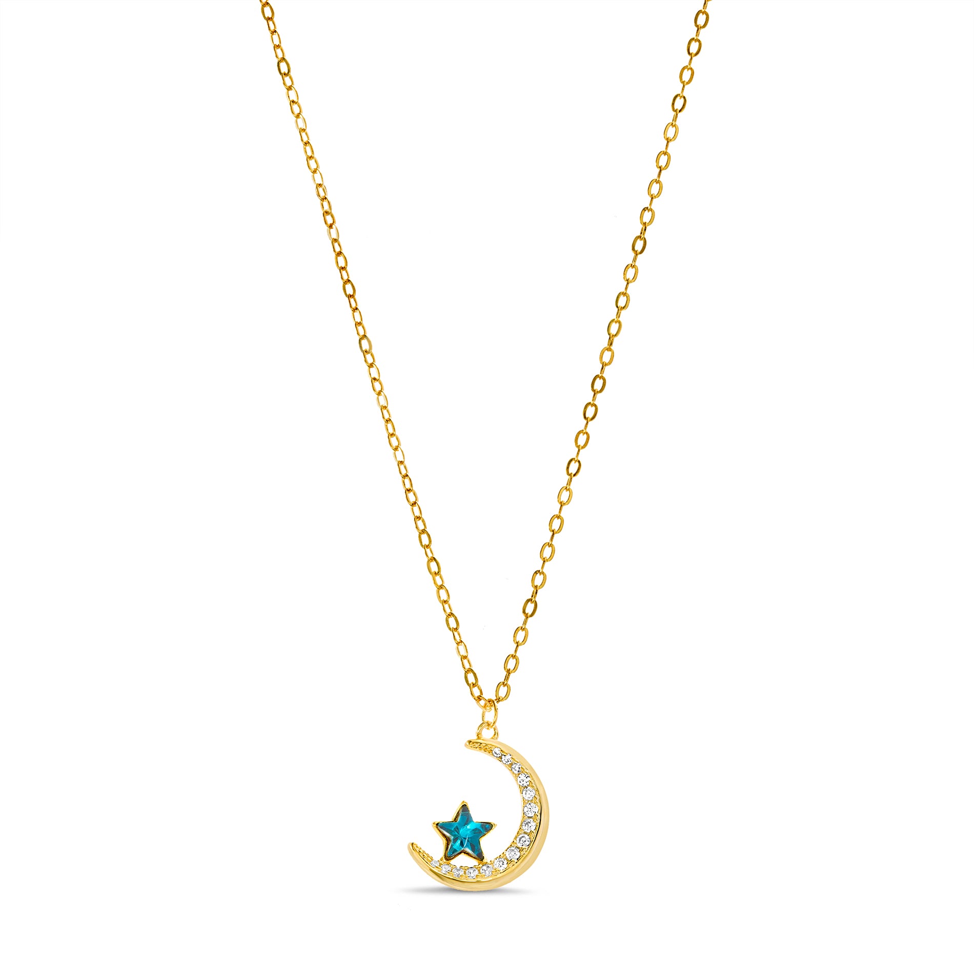 Sterling Silver Gold Multcolored CZ Crescent WY/ Star Chain Necklace