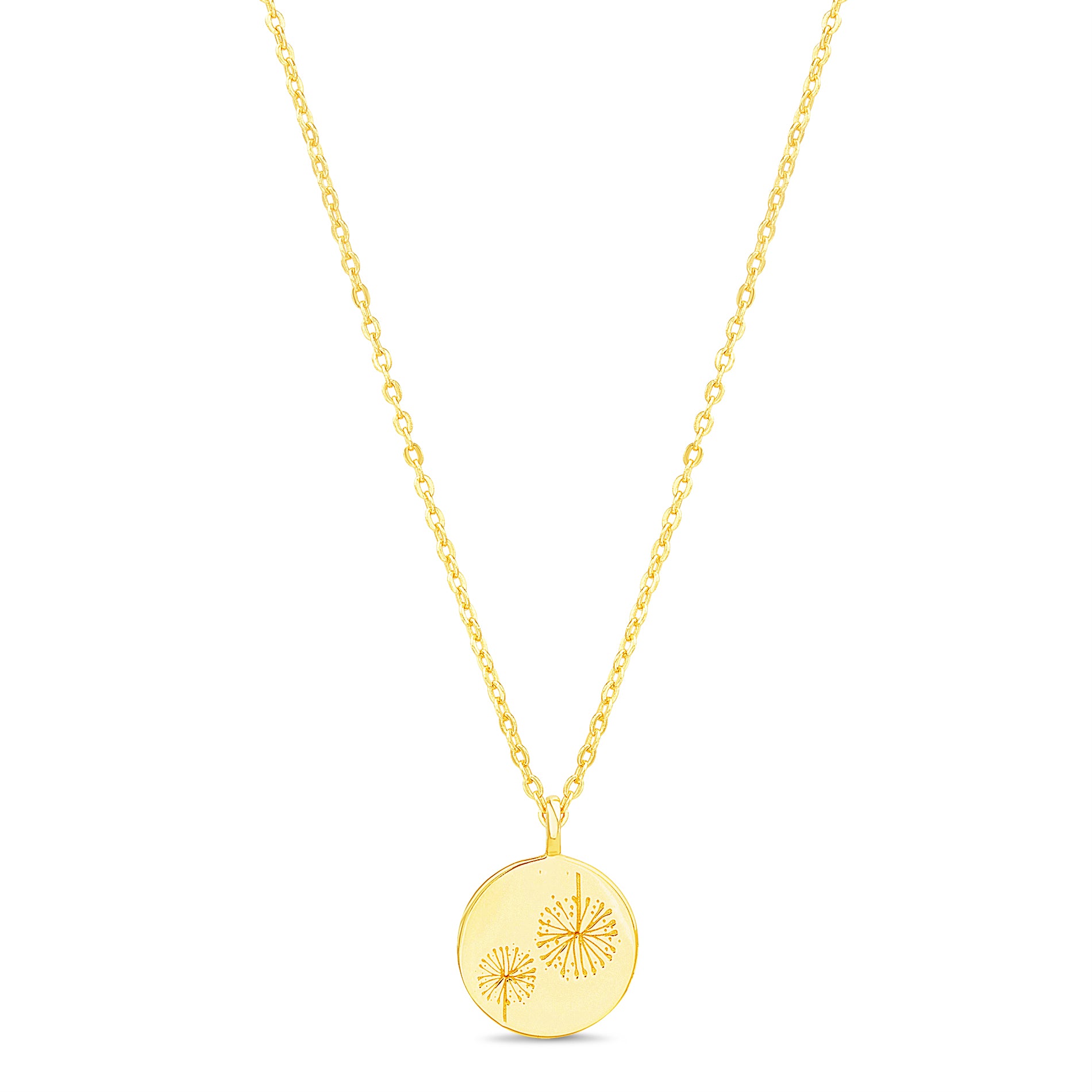 Sterling Silver Gold Disc W/ Dandelion on Rolo Chain Necklace 16"+2"/12MM