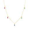 Elevate your style with the Sterling Silver Gold Multicolored Baguette CZ Dangle Necklace. This exquisite piece features vibrant multicolored baguette cubic zirconia set in a sophisticated dangle design. Crafted from high-quality sterling silver and plated with luxurious gold, the necklace shines with a radiant finish. The 16" chain, with an additional 2" extender, ensures a perfect and adjustable fit, making this necklace an elegant choice for any occasion.
