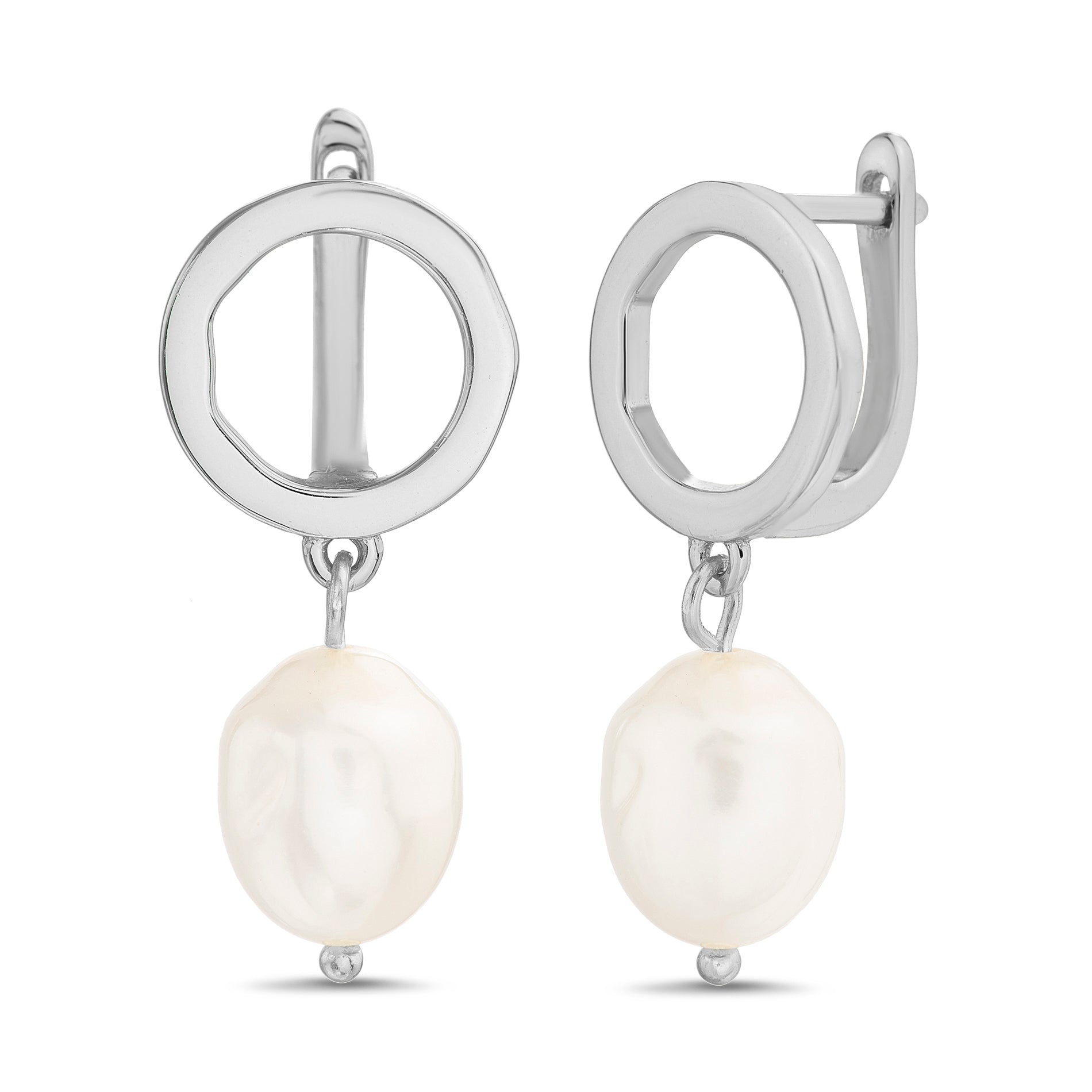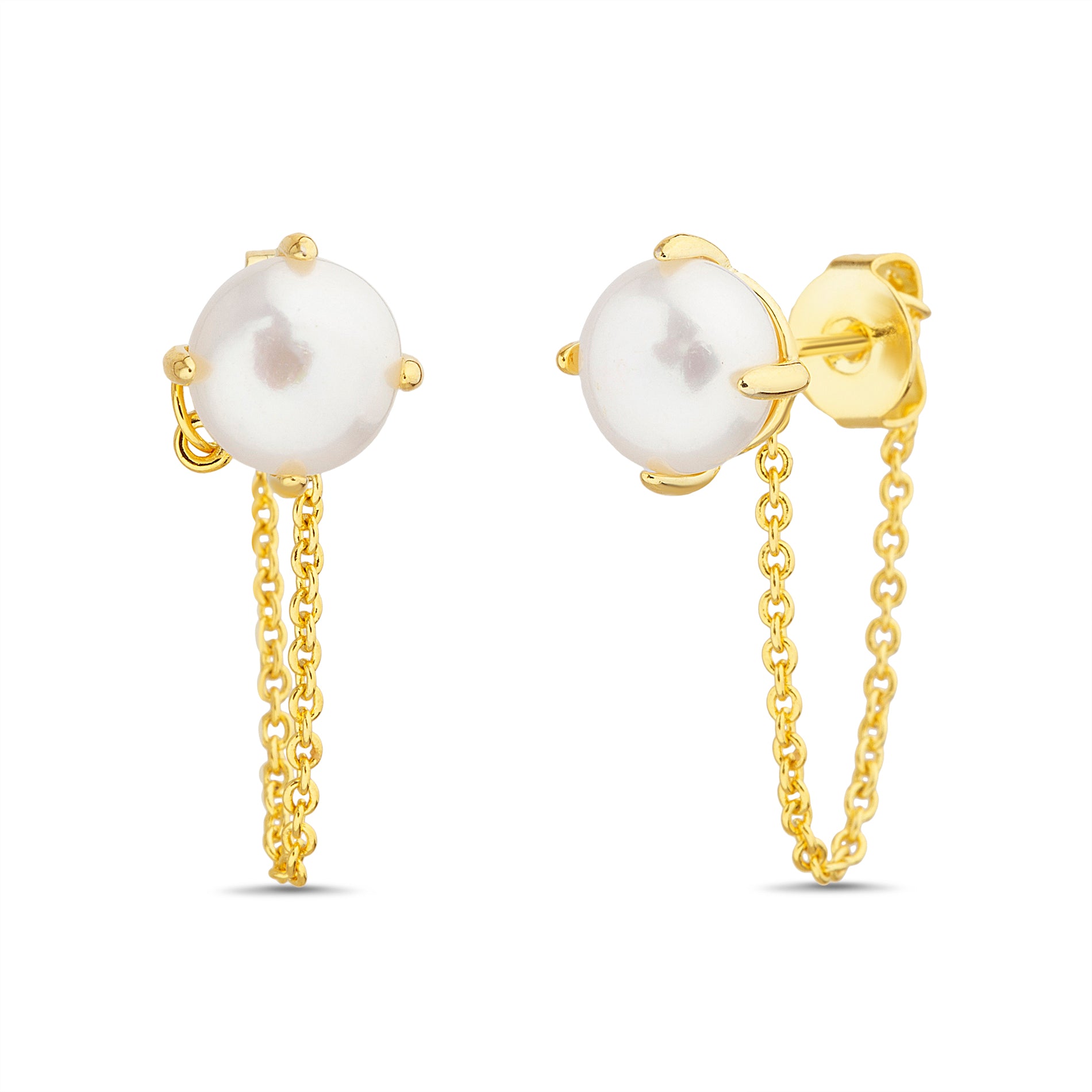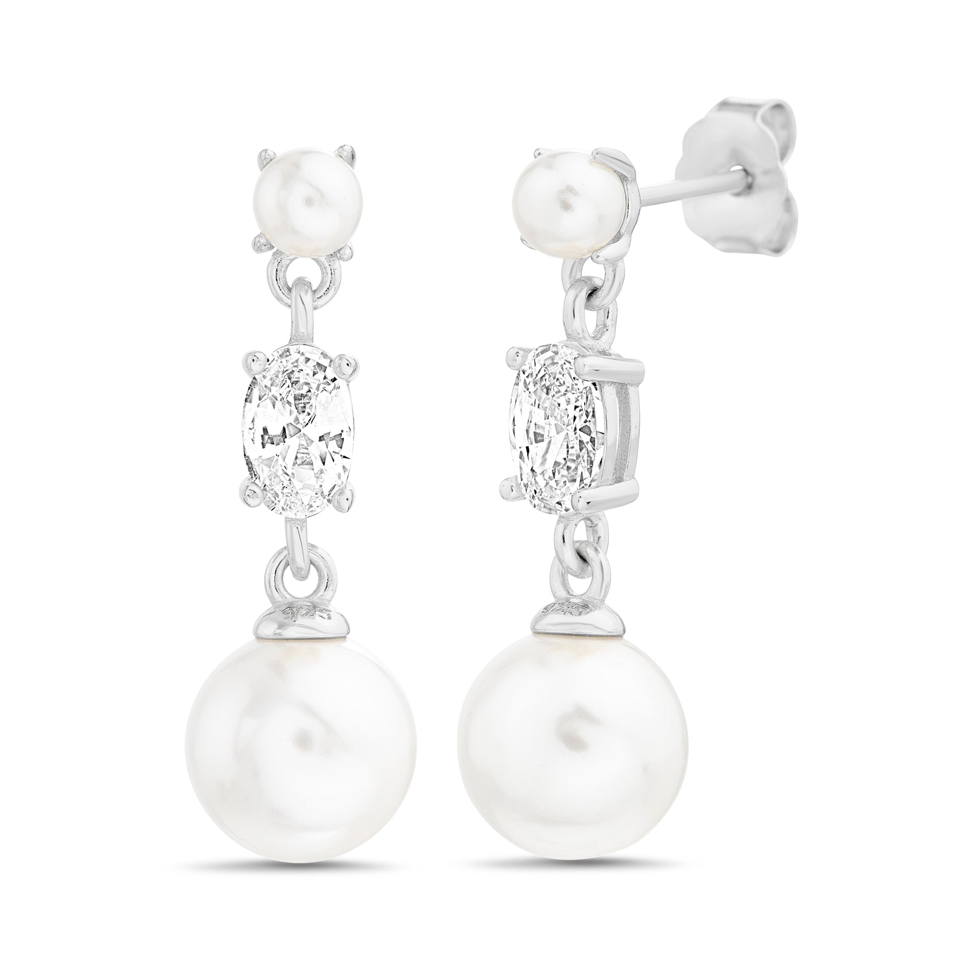 Sterling Silver 14k Gold White Pearl Dangle Earrings