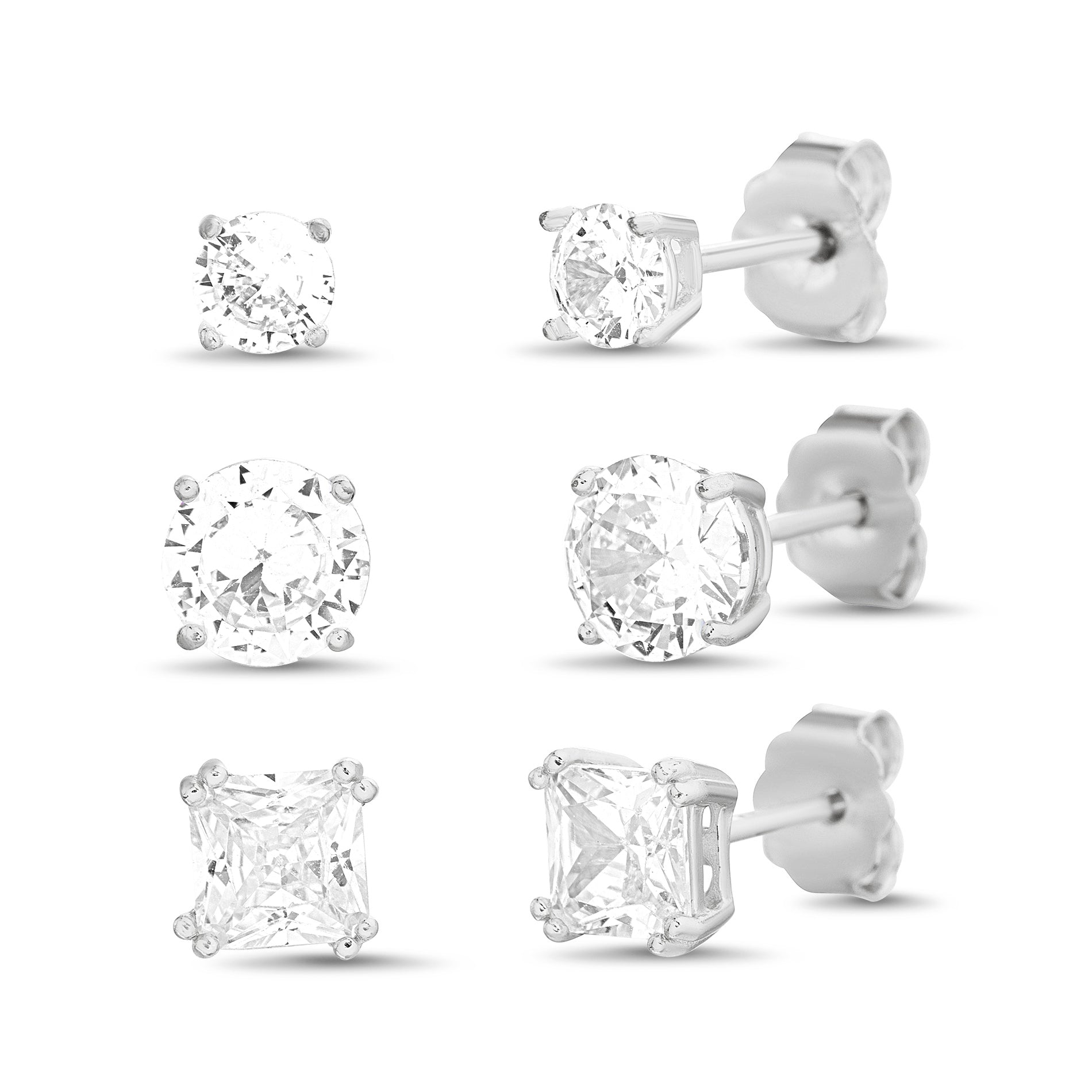 Silver CZ Stud Trio - Round & Square