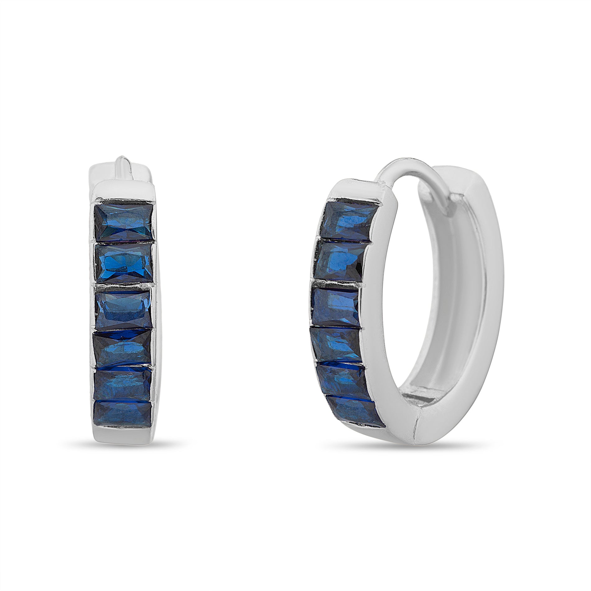 Silver Blue CZ Baguette Huggies