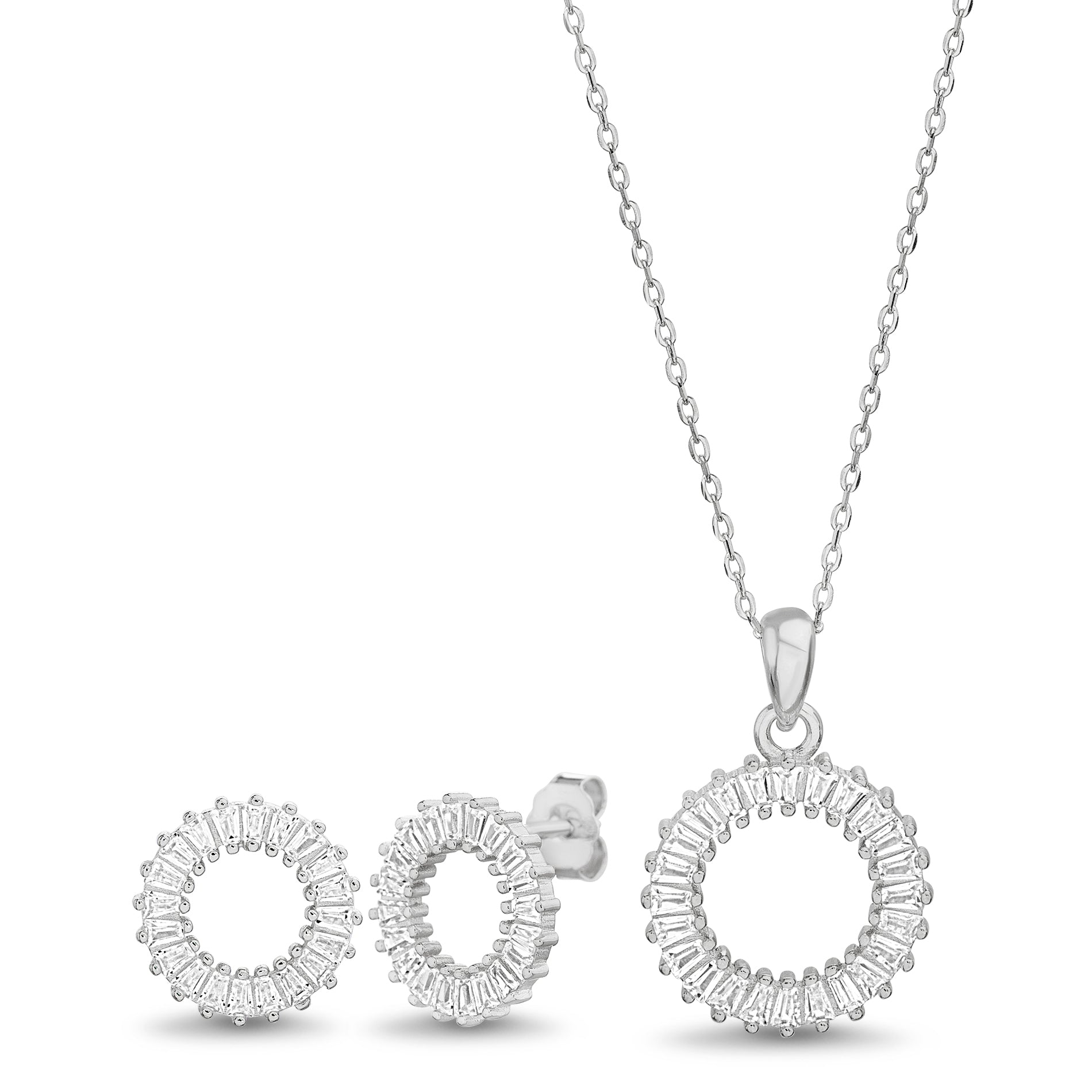 Silver Clear CZ Open Disc Earring & Necklace Set
