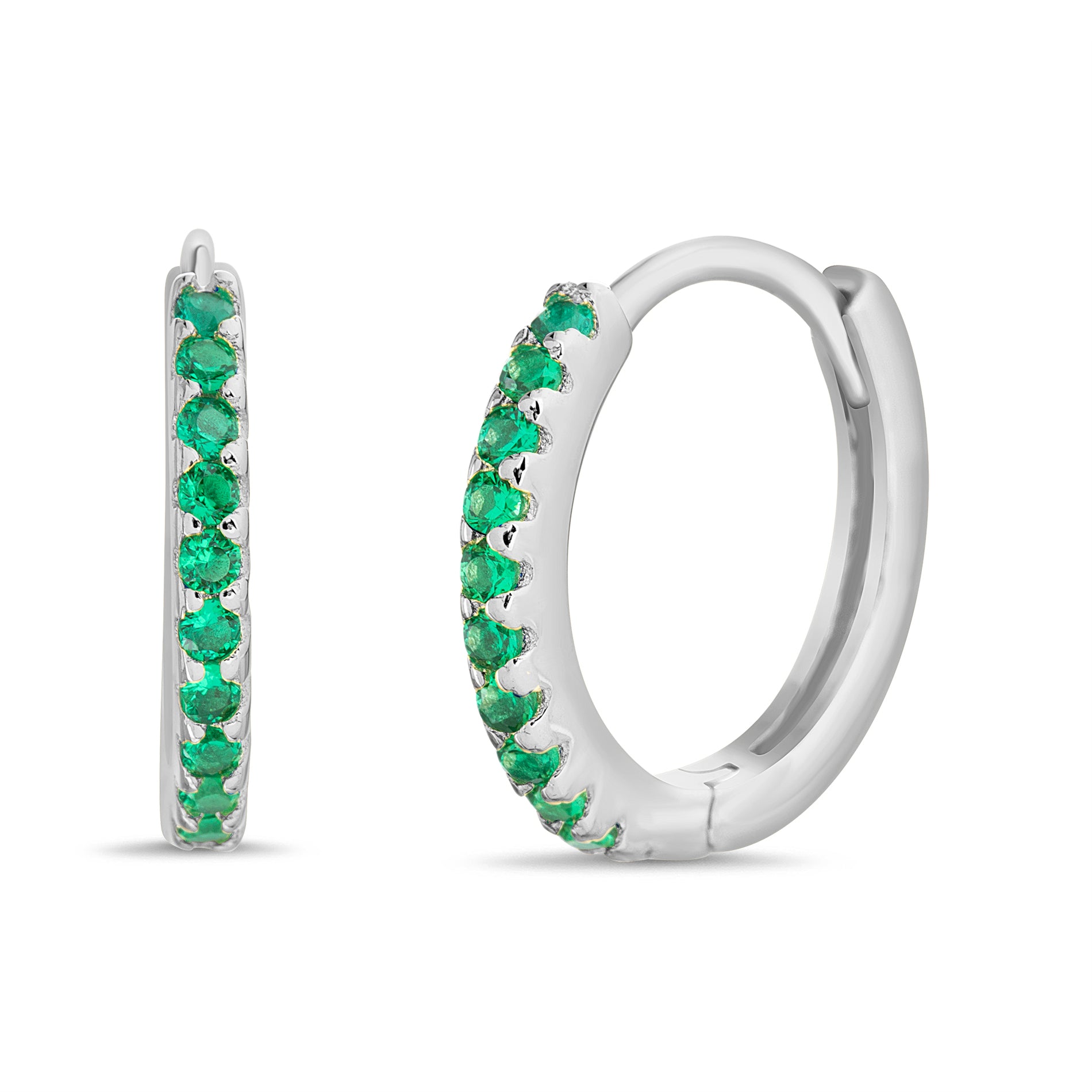Green CZ Huggie Earrings