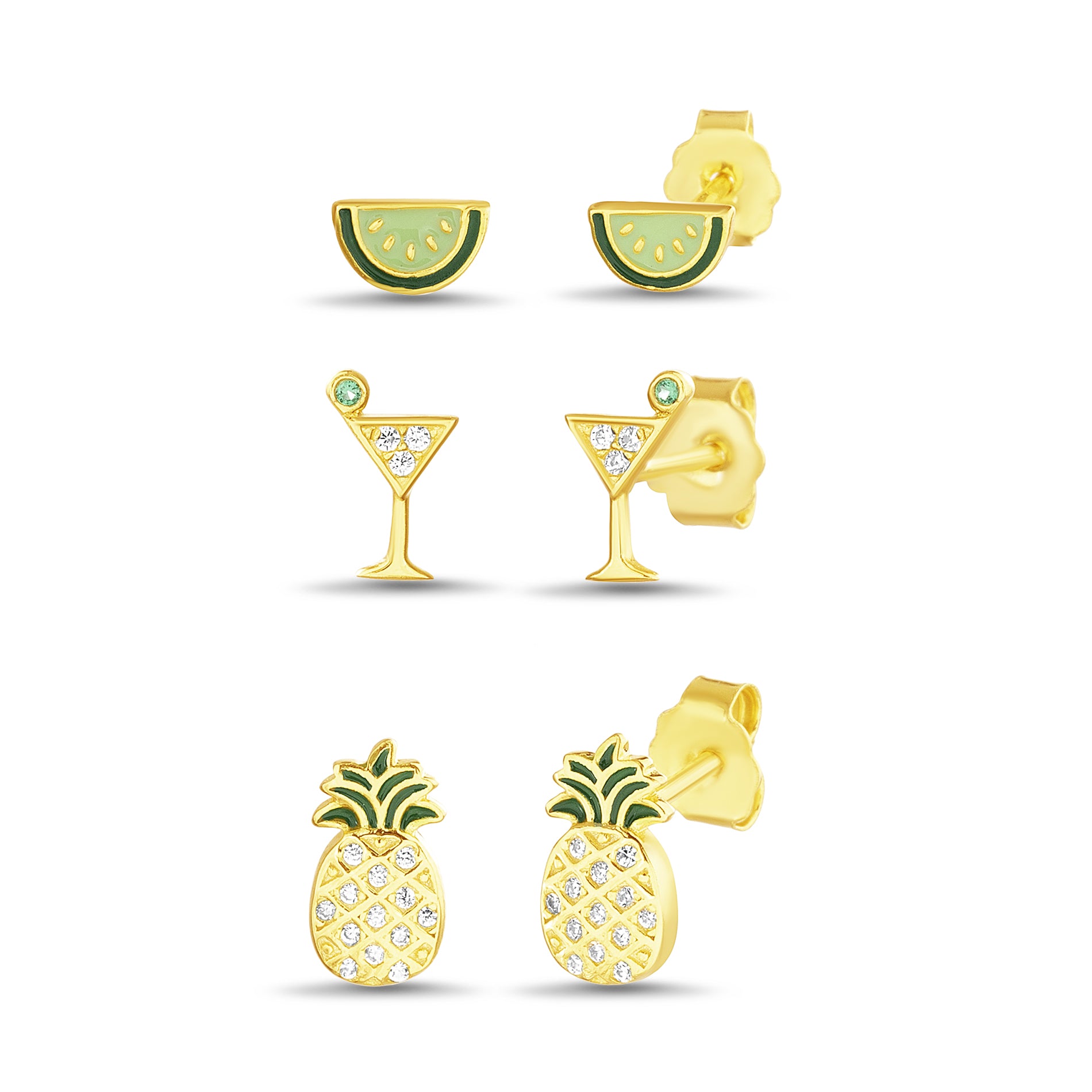 Gold CZ Tropical Trio Stud Set