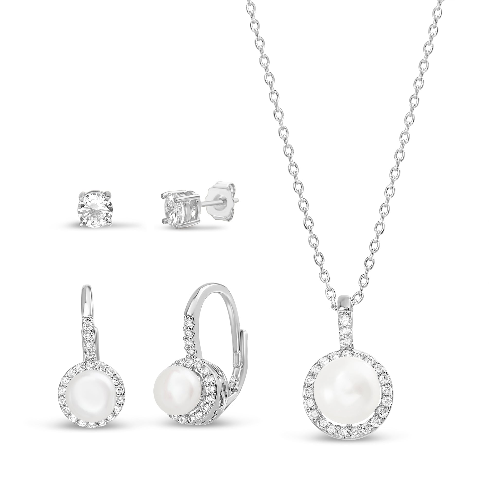 Pearl Halo Leverback Earring Necklace Set