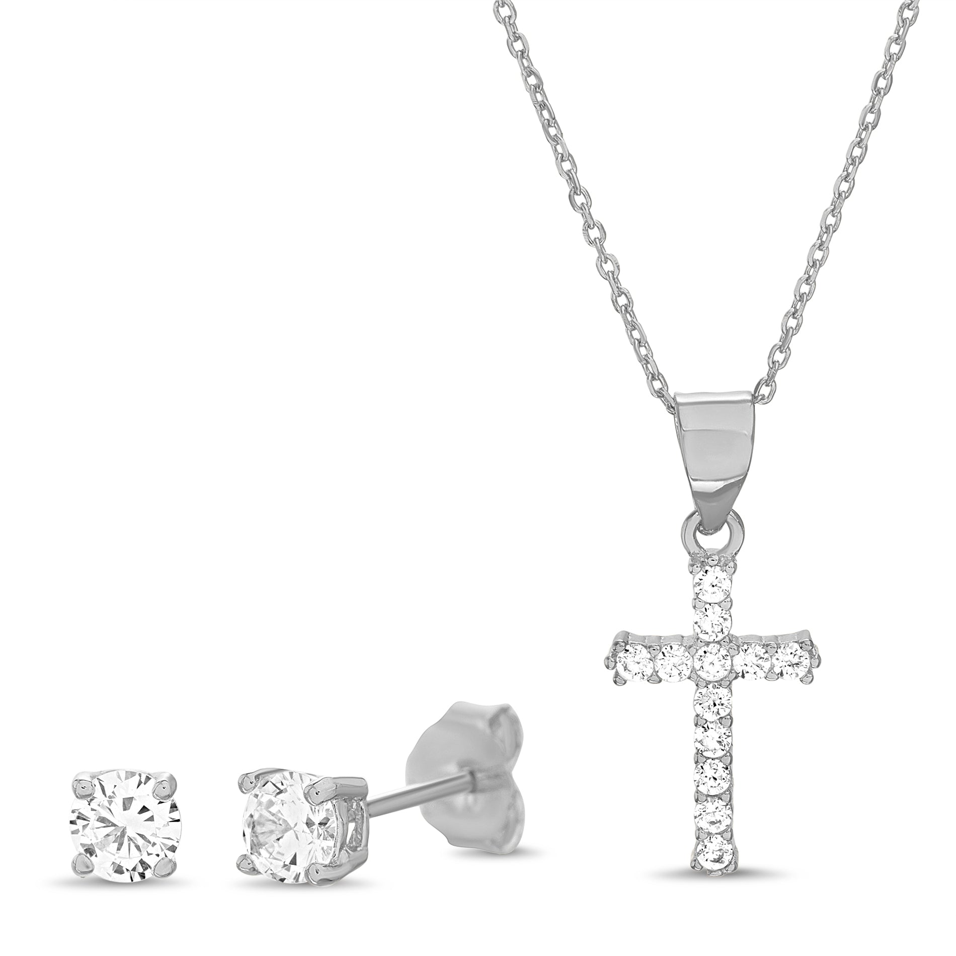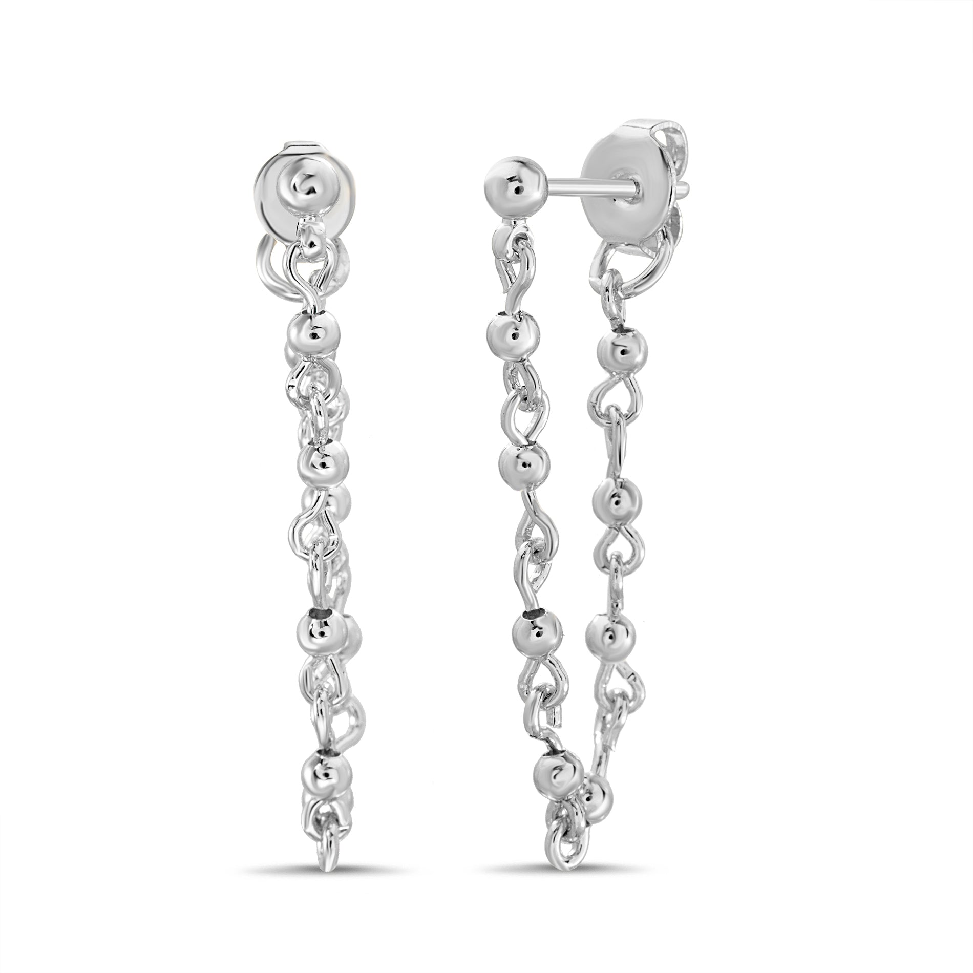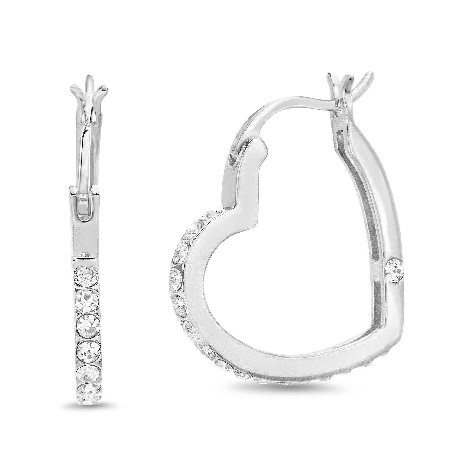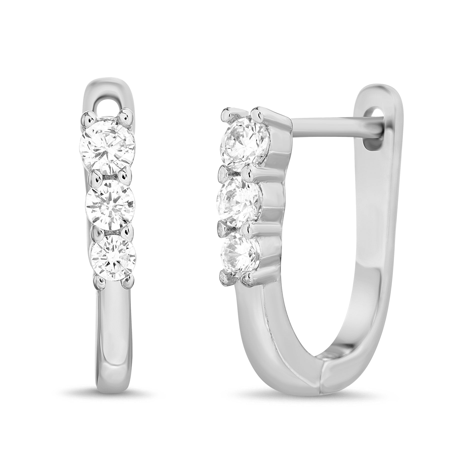 Sterling Silver Rhodium & CZ Clear Hoop Huggie Earring