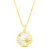 Discover the charm of the Sterling Silver Yellow Gold Light Blue CZ Mother of Pearl Disc on Cable Chain Necklace. This versatile piece features a stunning light blue CZ disc, ideal for enhancing your look on any occasion.