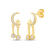 Elevate your style with the Gold CZ Crescent Star Drops. These earrings feature a delicate crescent and star design adorned with sparkling CZ stones, crafted in sterling silver with a yellow gold-plated finish. Perfect for adding a celestial touch to any look.