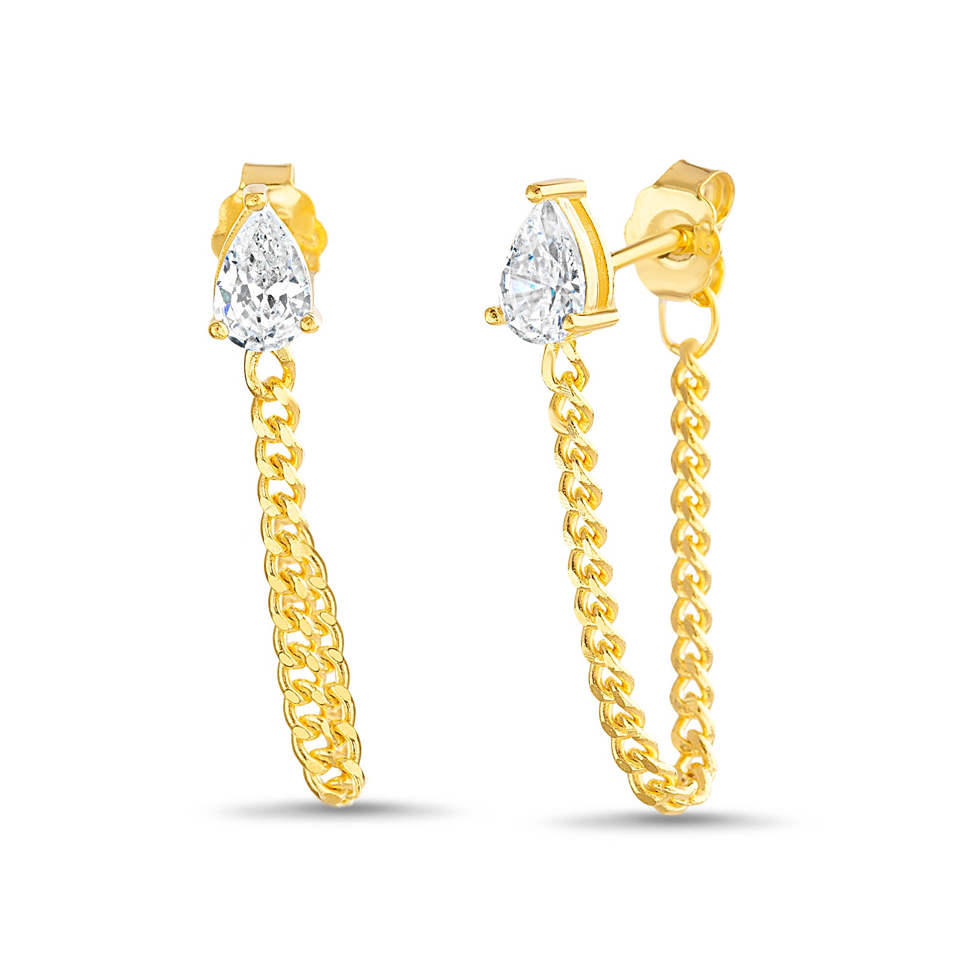 Gold Pear-Shaped CZ Front-to-Back Earrings
