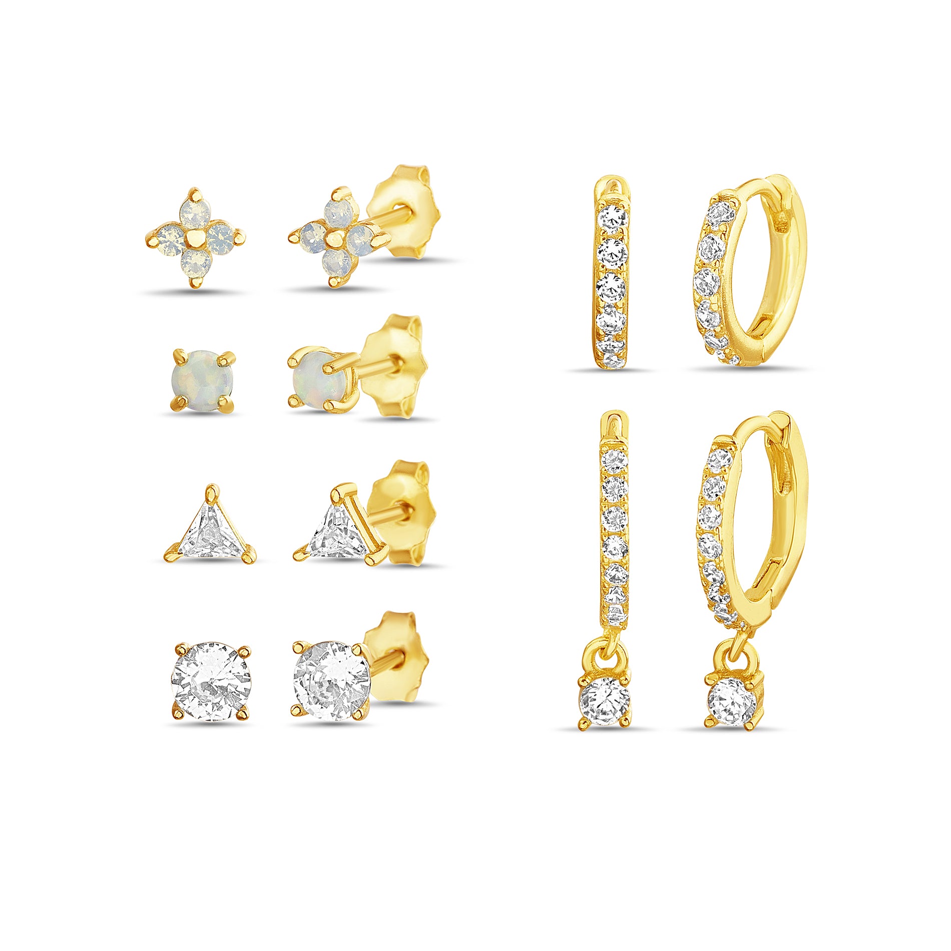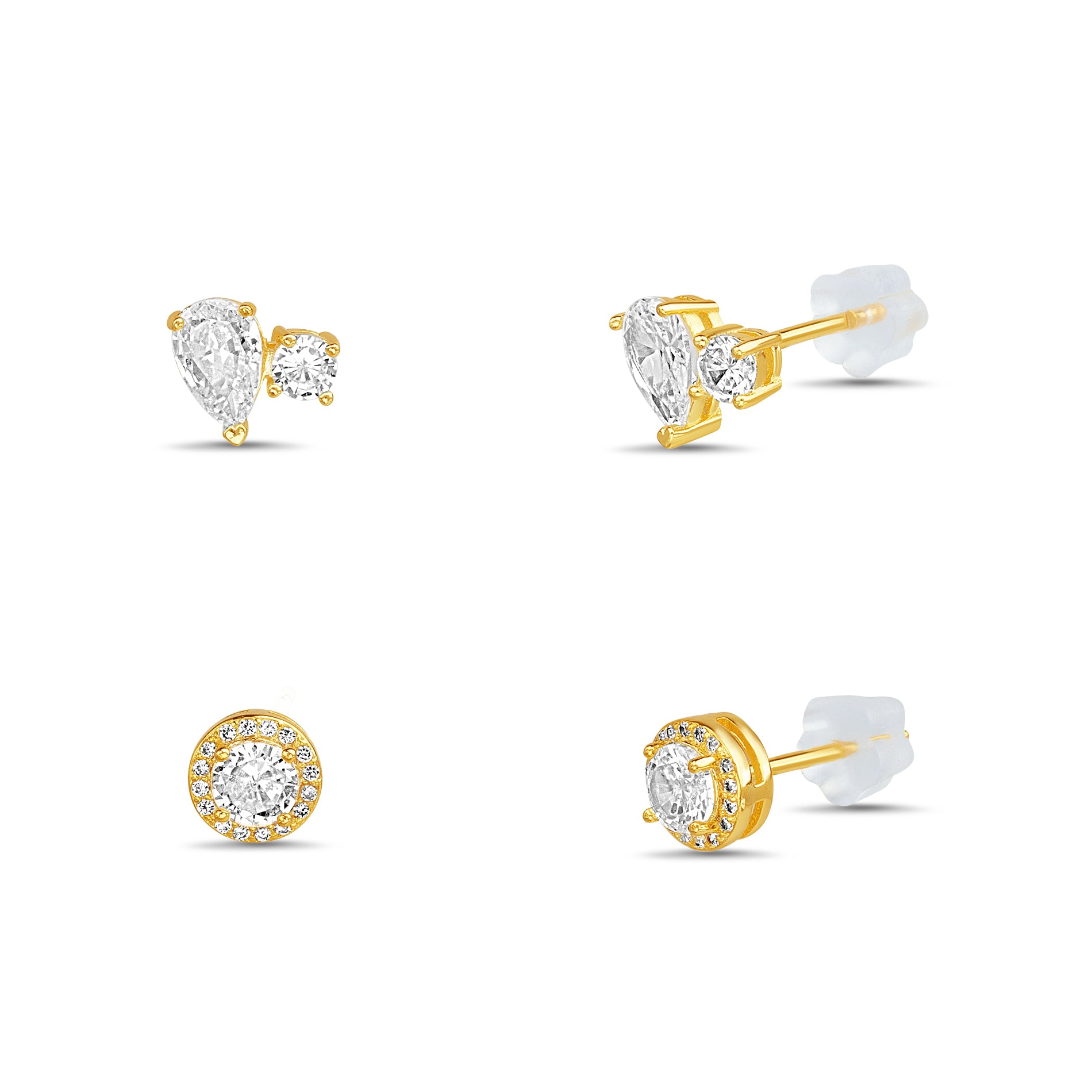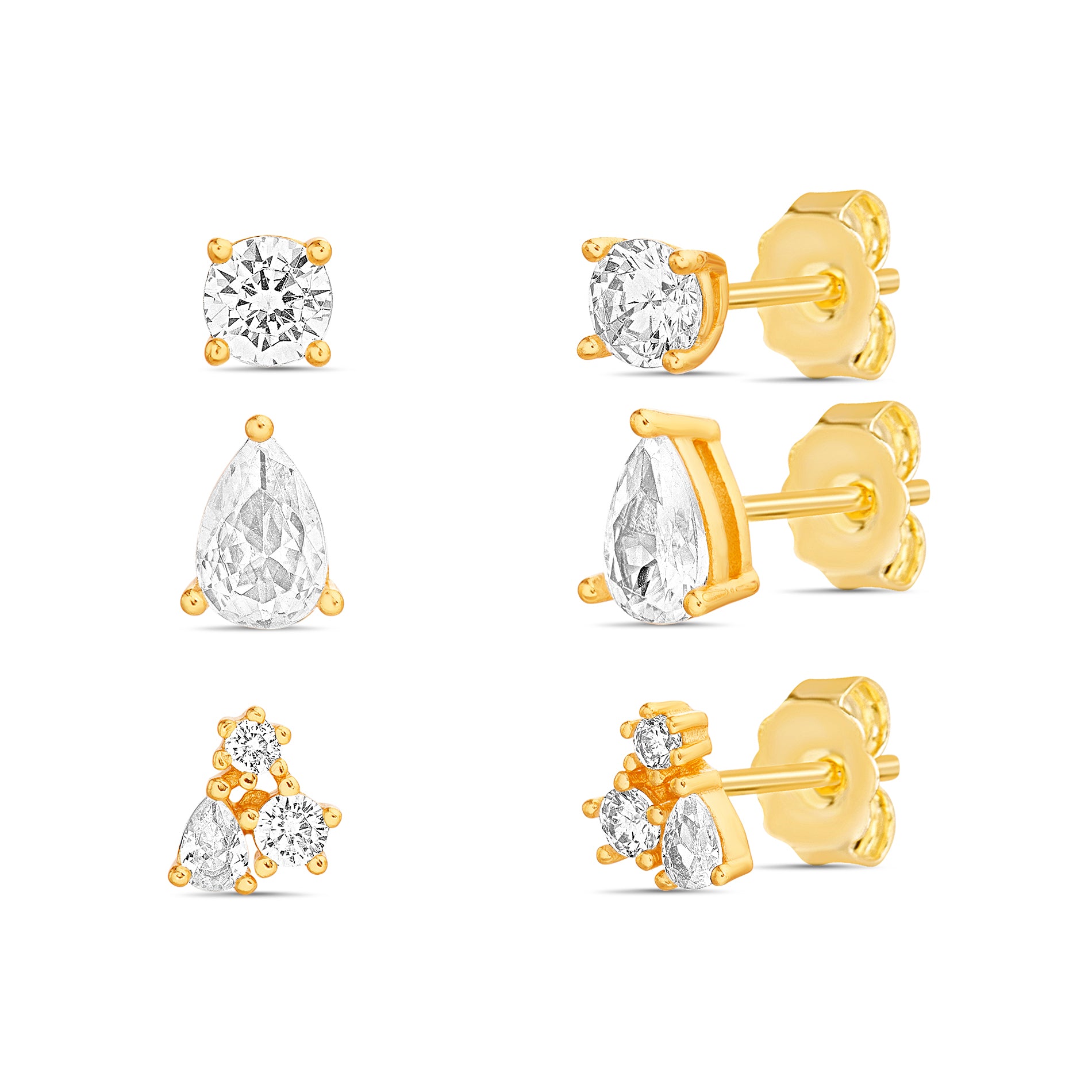 Gold Stud Trio – Round, Teardrop, and Cluster