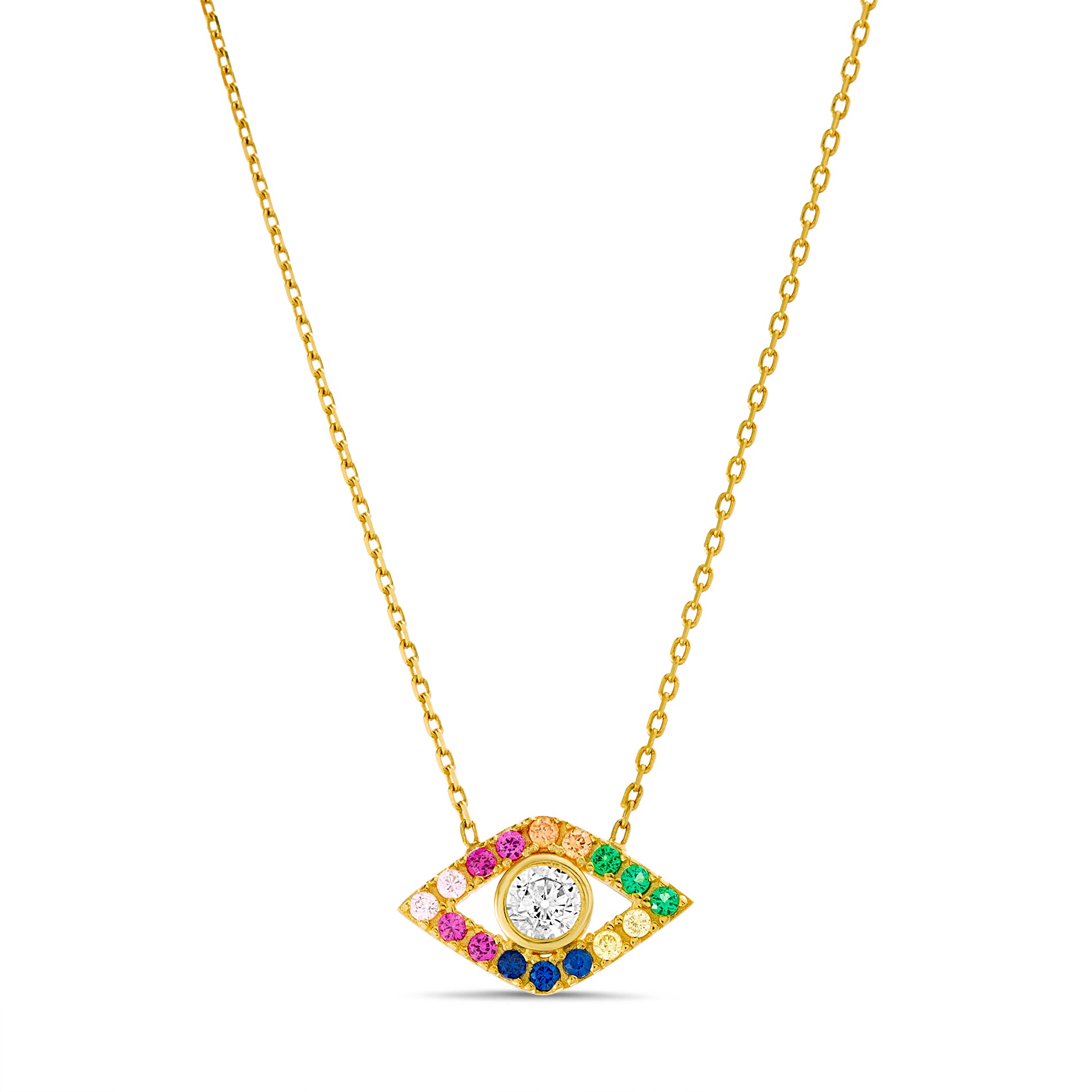 Multicolor Gem Evil Eye Dangle Beaded Bracelet