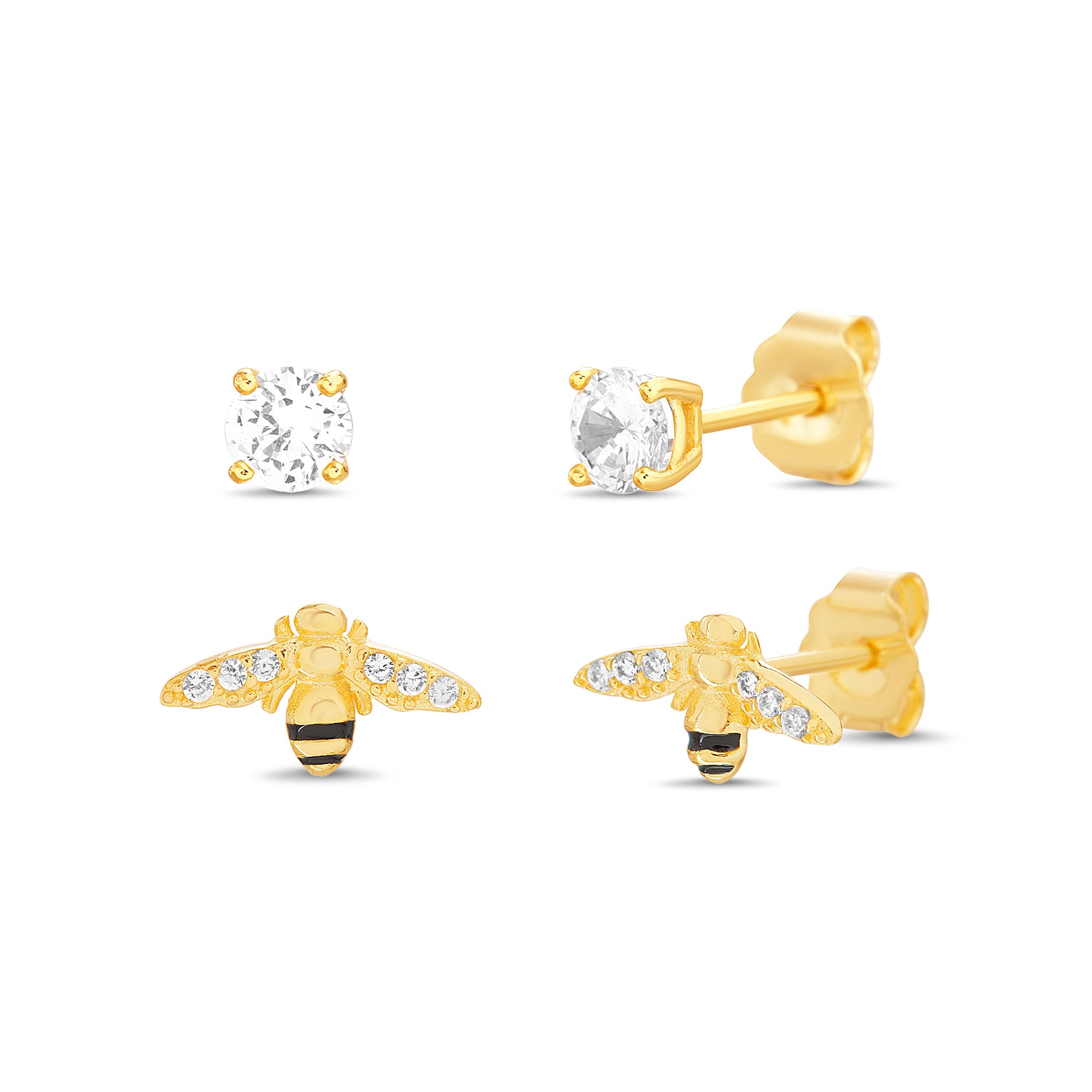 Gold Earring Set - CZ Bee & Stud