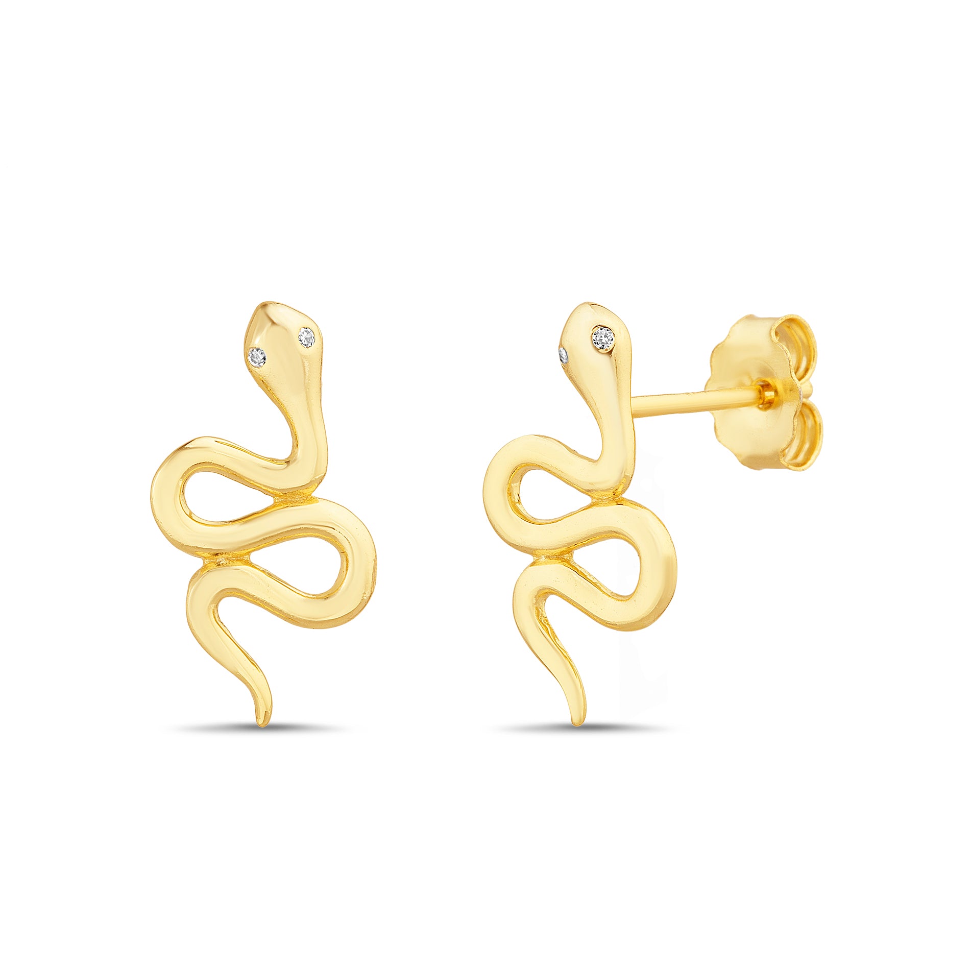 Gold CZ Snake Stud Earrings
