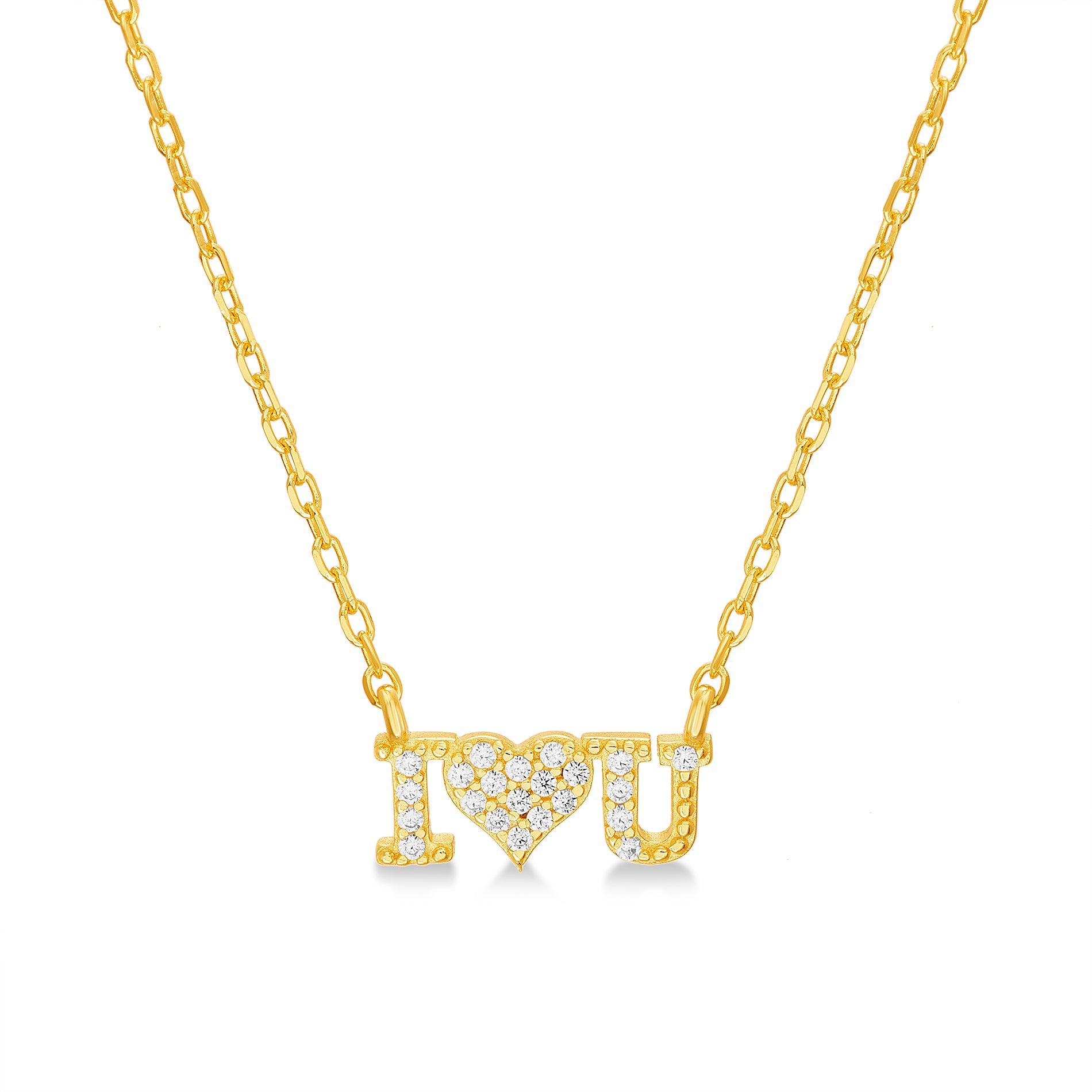 Gold CZ "I Heart U" Station Necklace