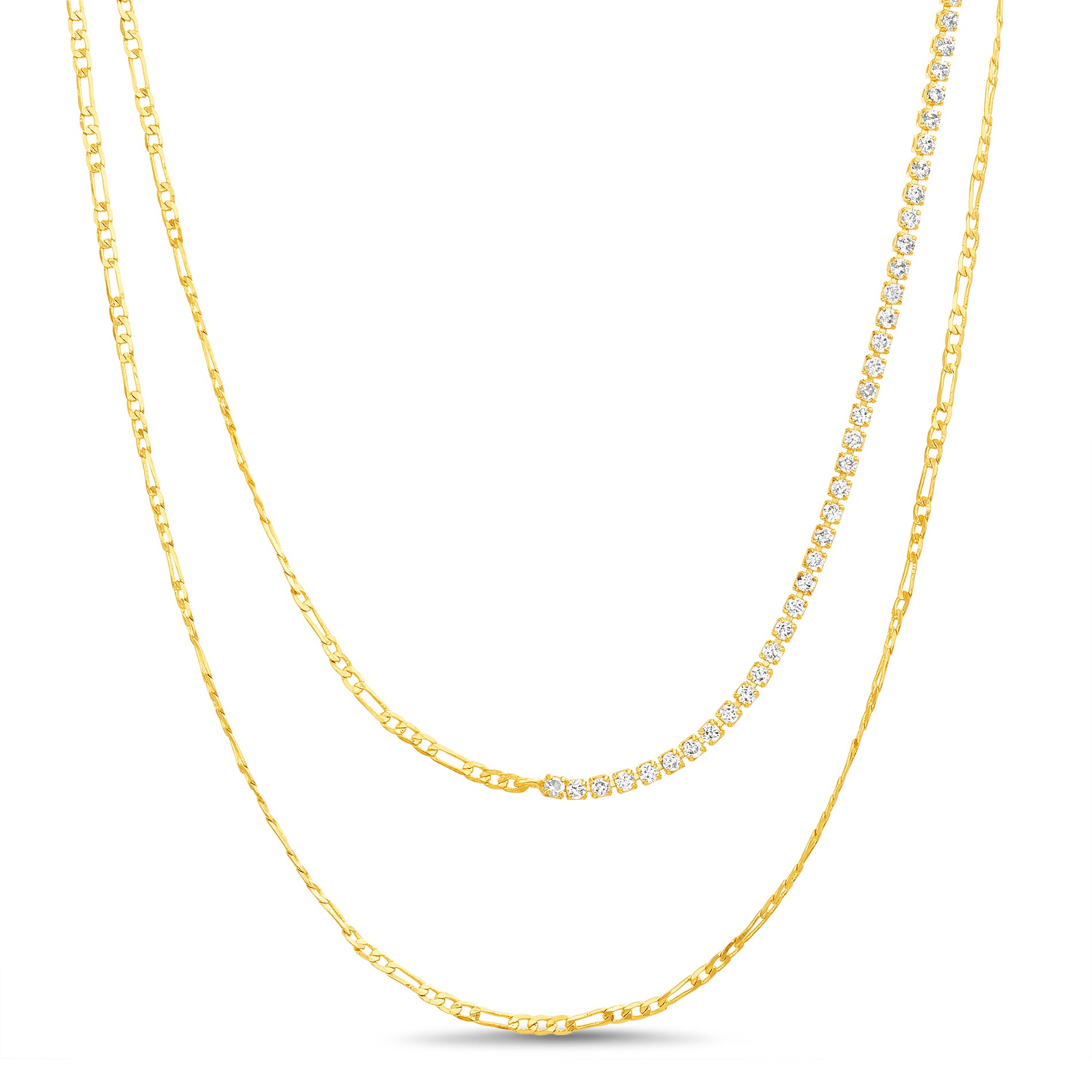 Gold Figaro Tennis Necklace Set