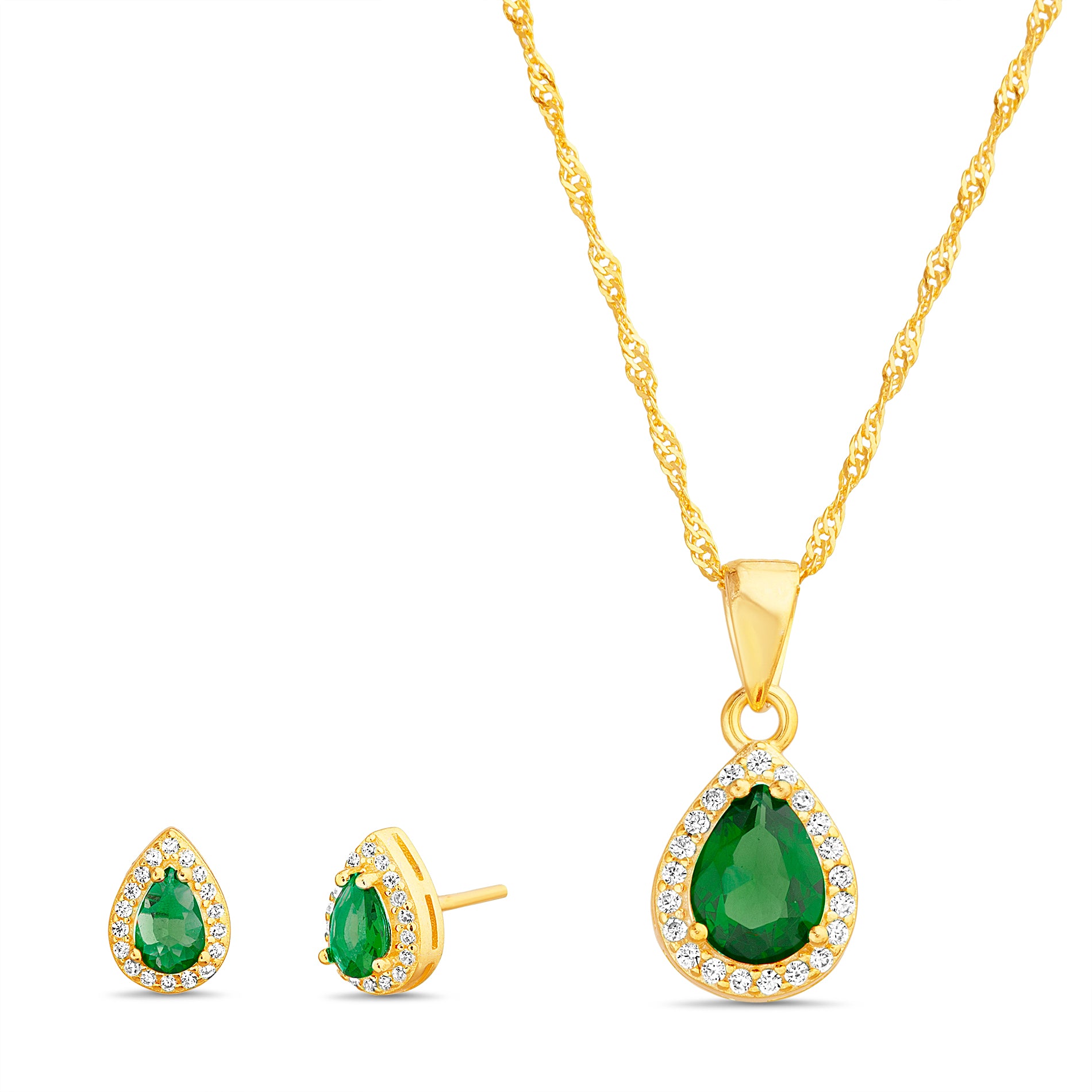 Gold Green CZ Pear Shape Earring & Necklace Set