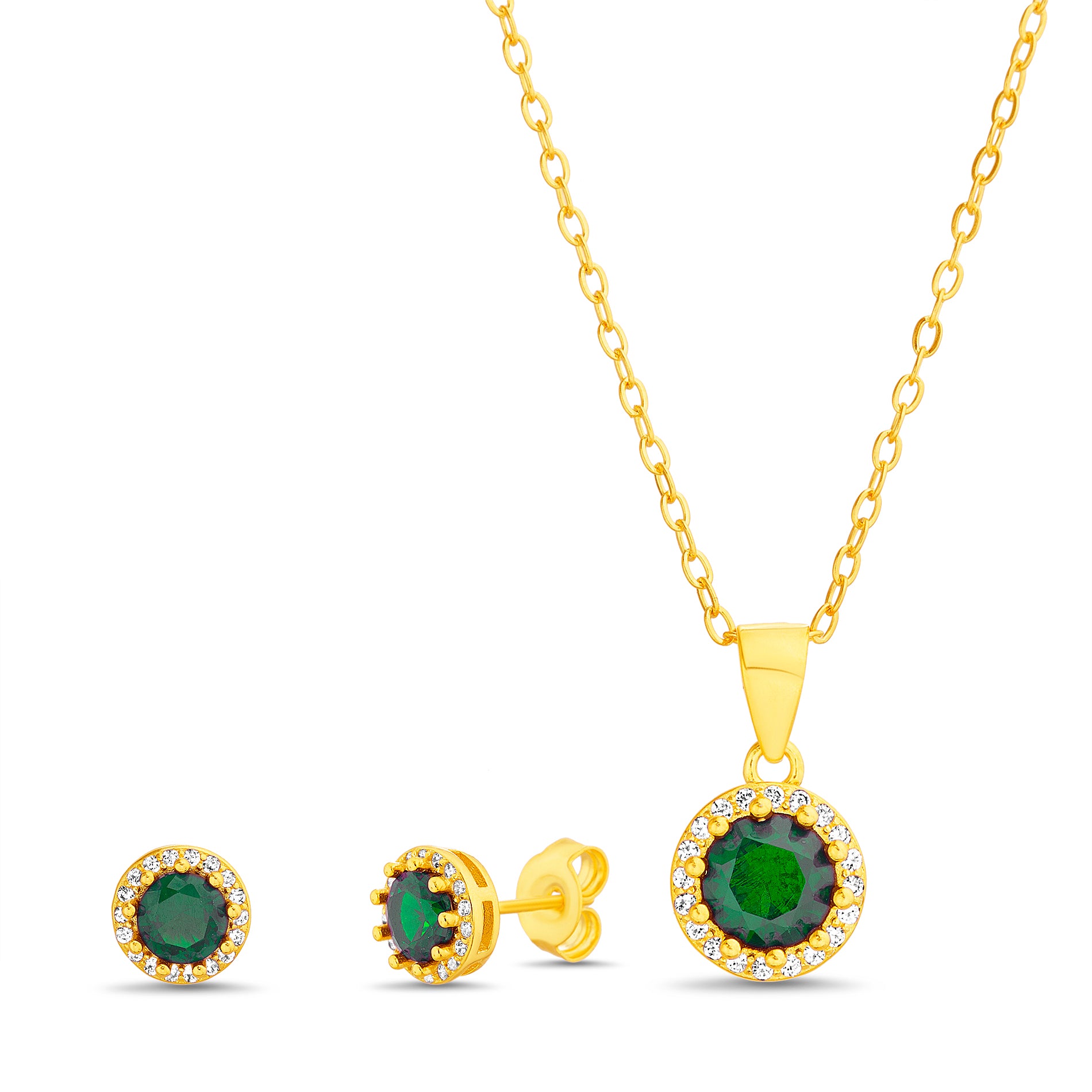 Gold Emerald and Clear with Halo Necklace & Earring Set