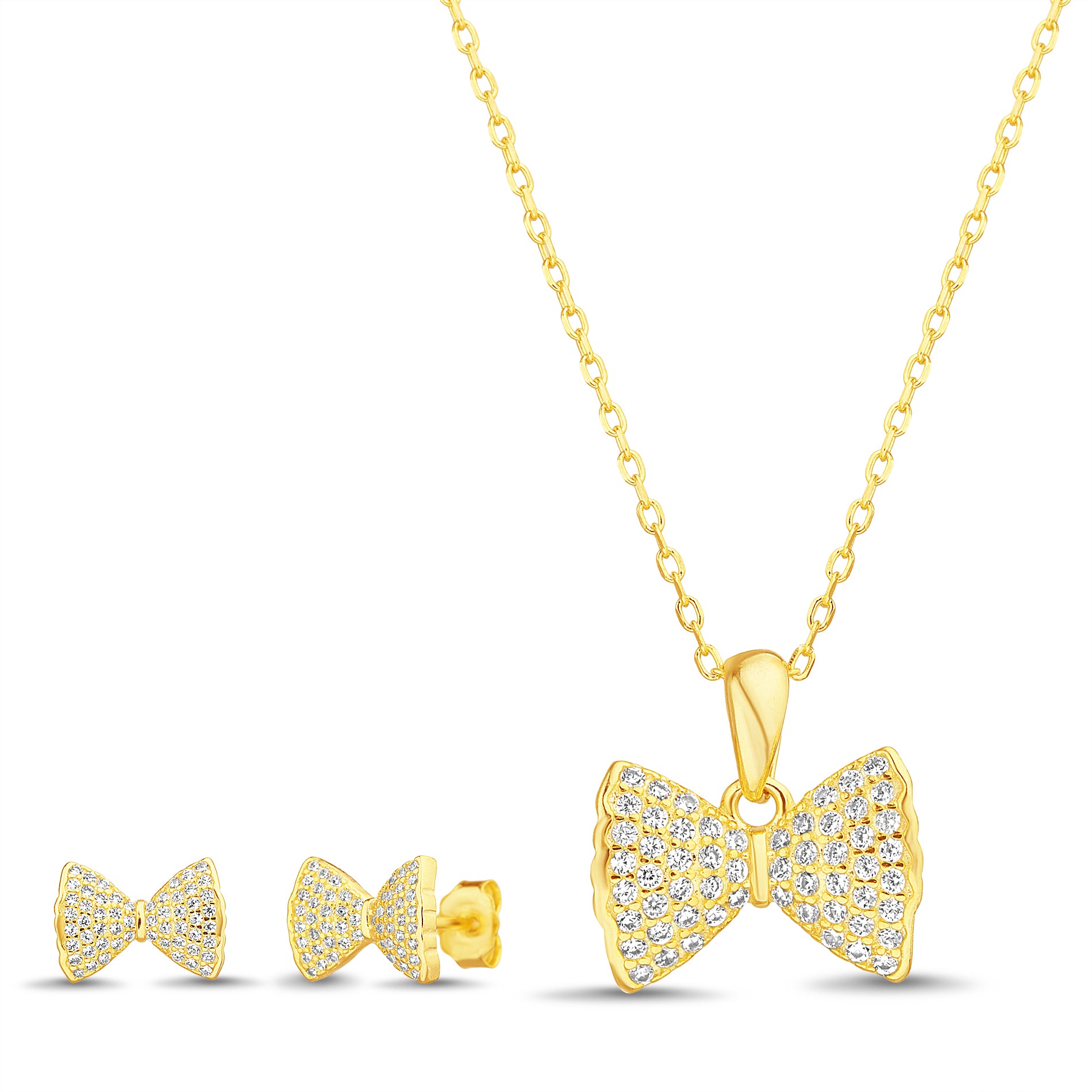 Gold Clear CZ Bowtie Set