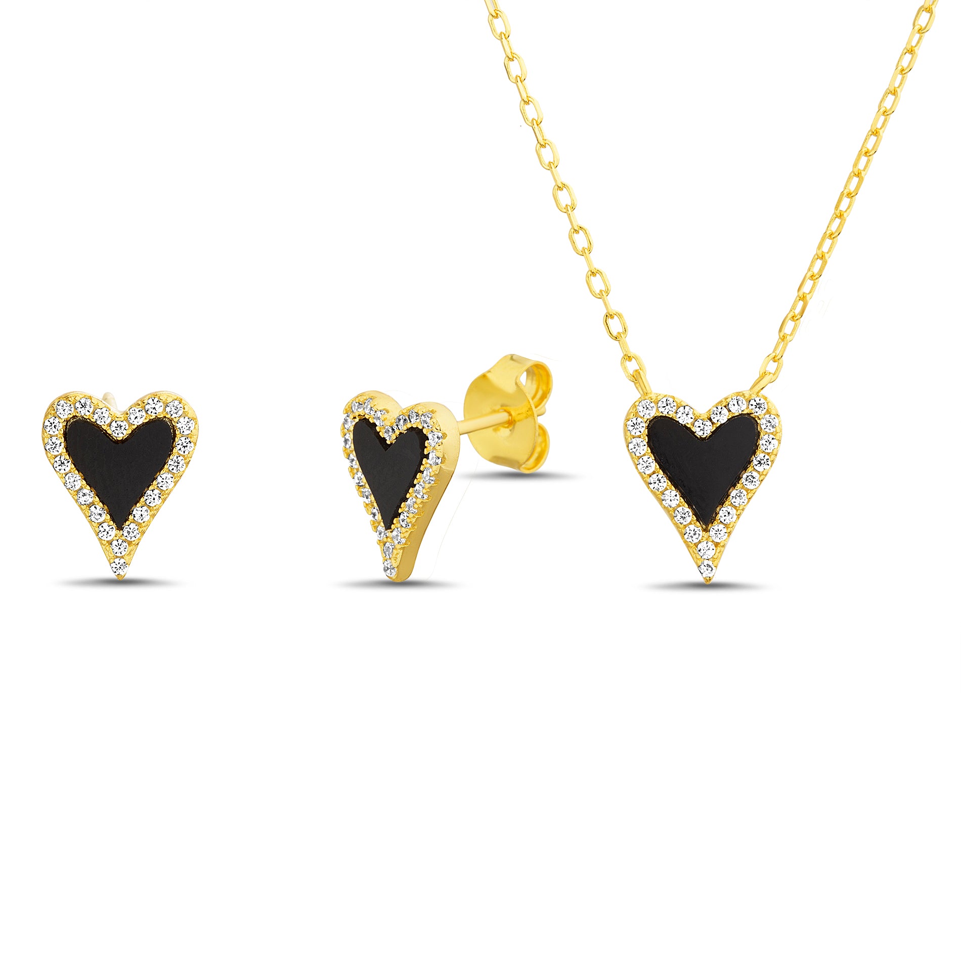 Gold Black Onyx Heart Earring & Necklace Set