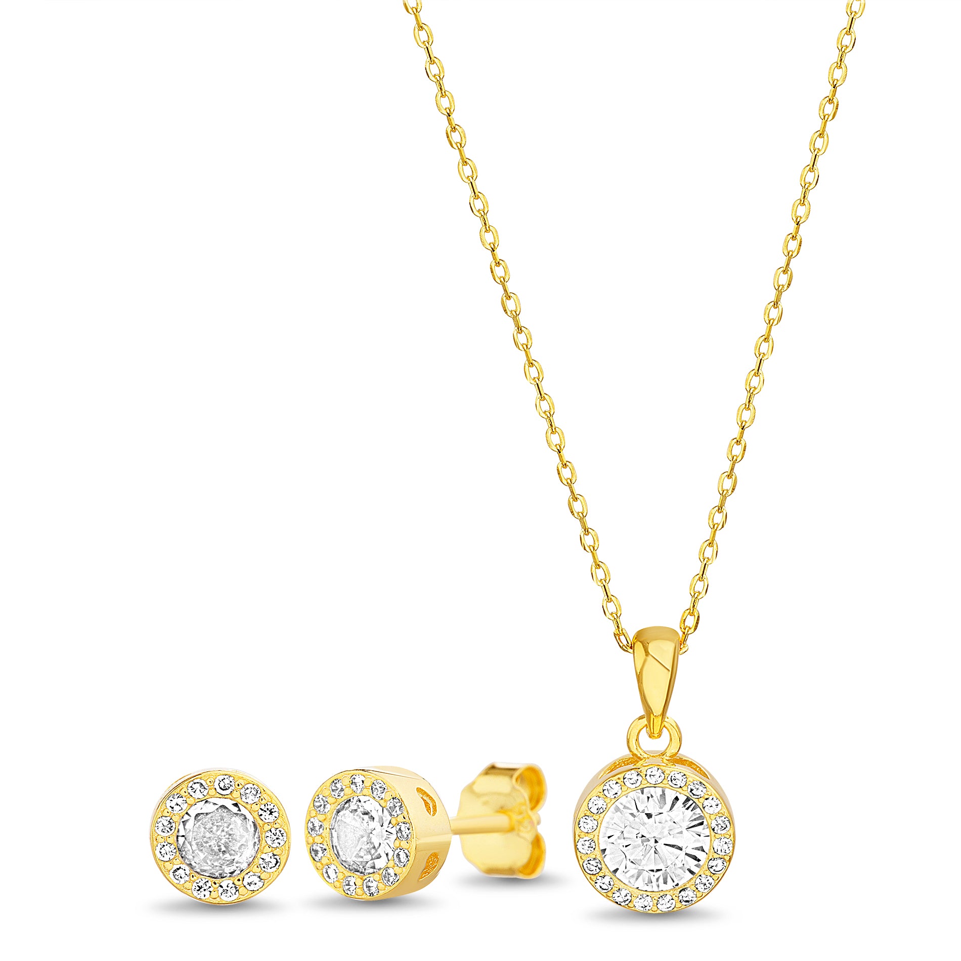 Gold Round Clear CZ Earring & Necklace Set