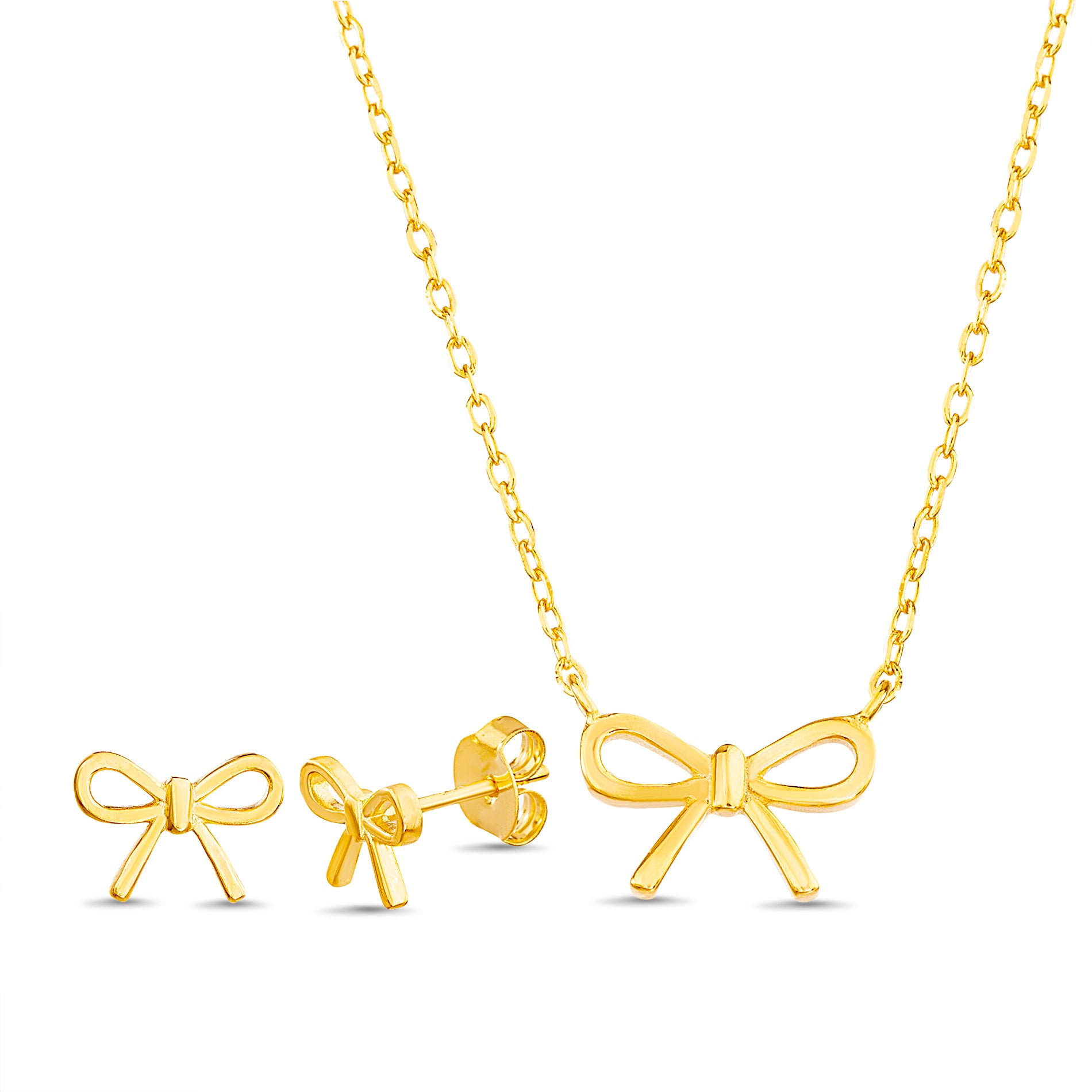 Gold Polished Bow Earring & Necklace Set