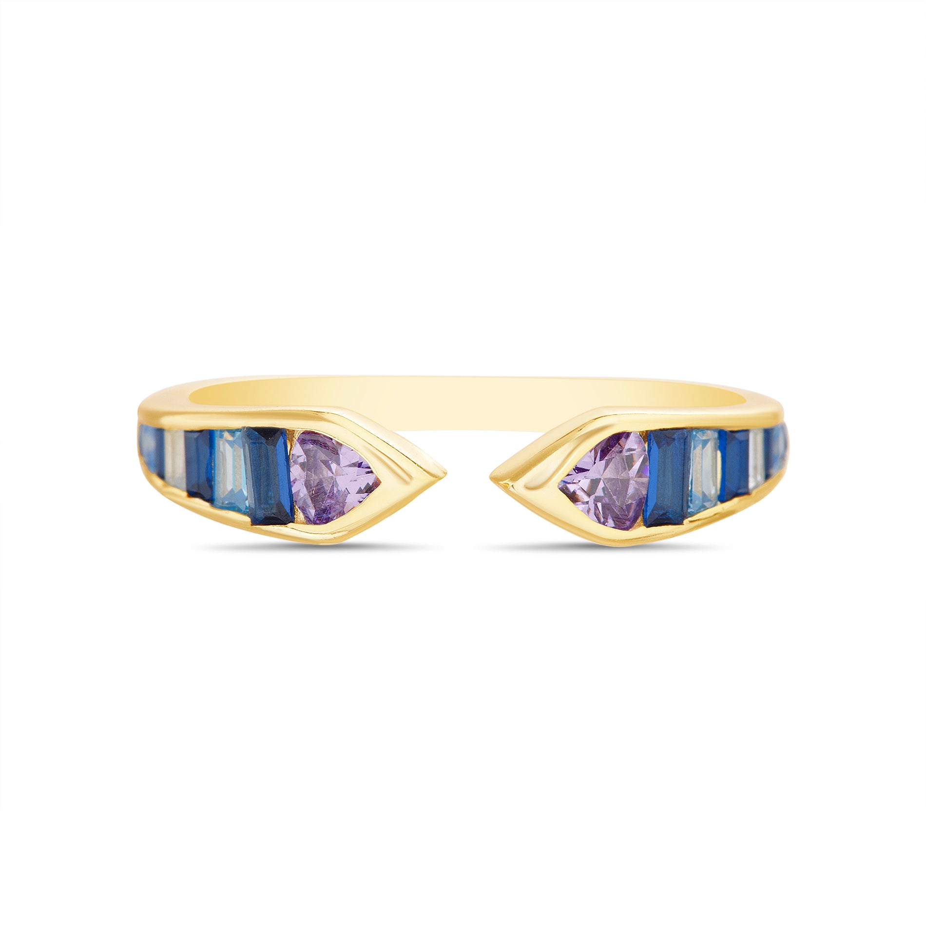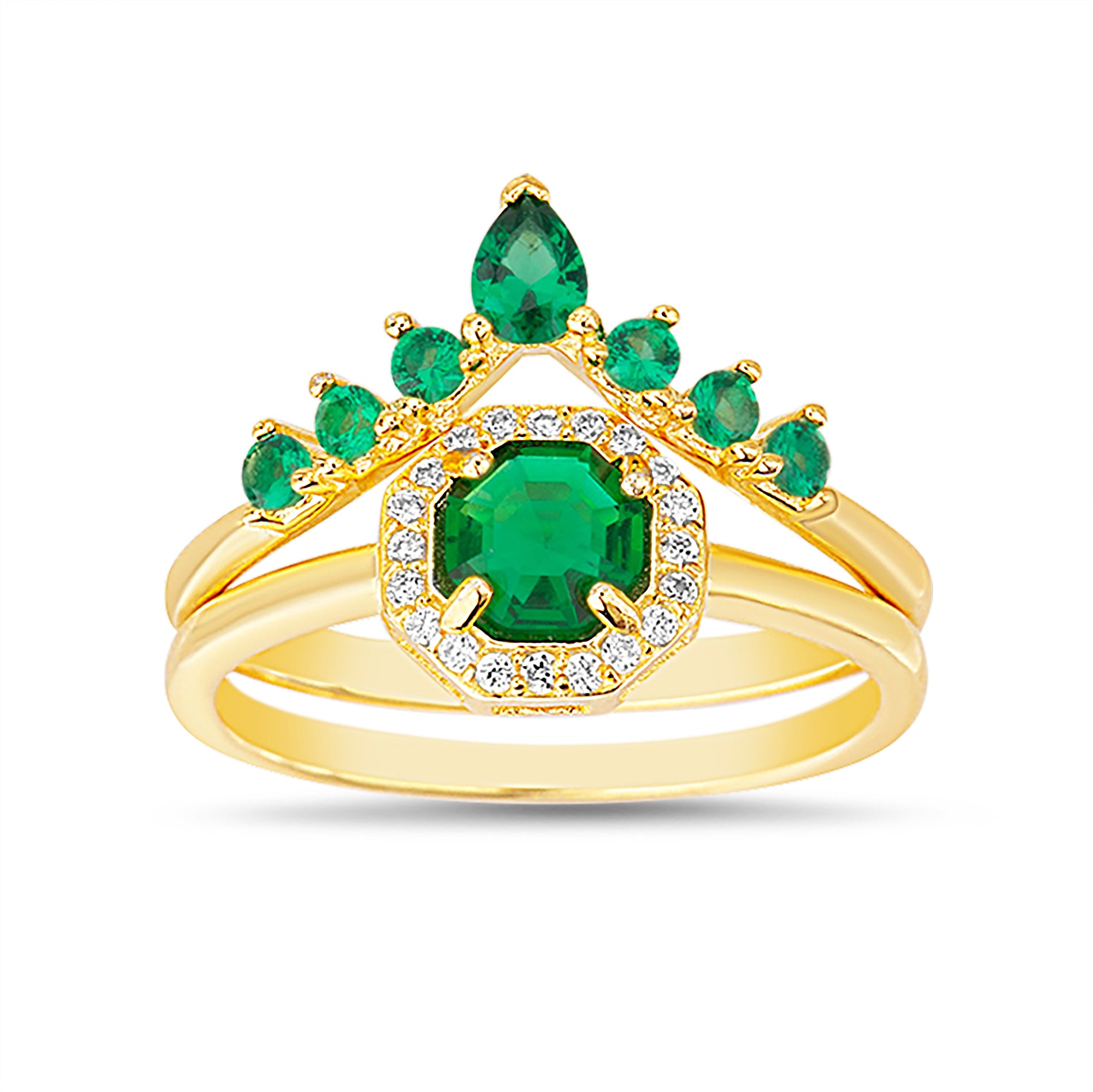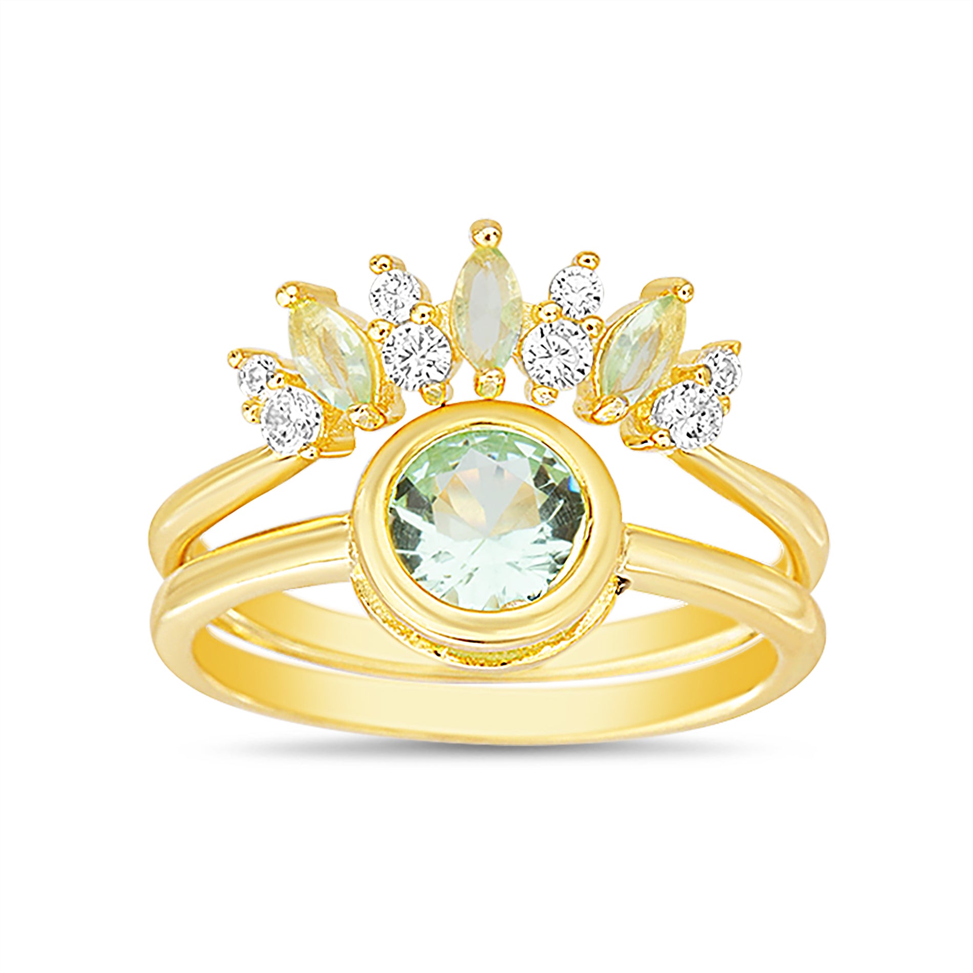 Gold Multi-Chrysoprase & Clear CZ Rings Set