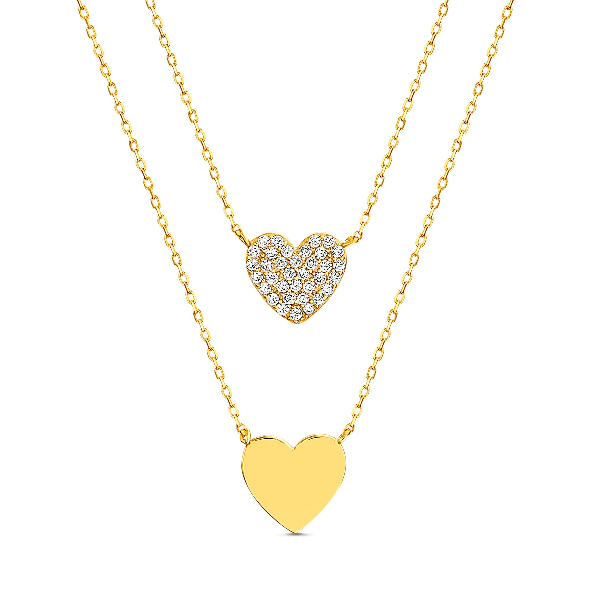 Gold CZ Heart & Disc Heart Duo Necklace Set