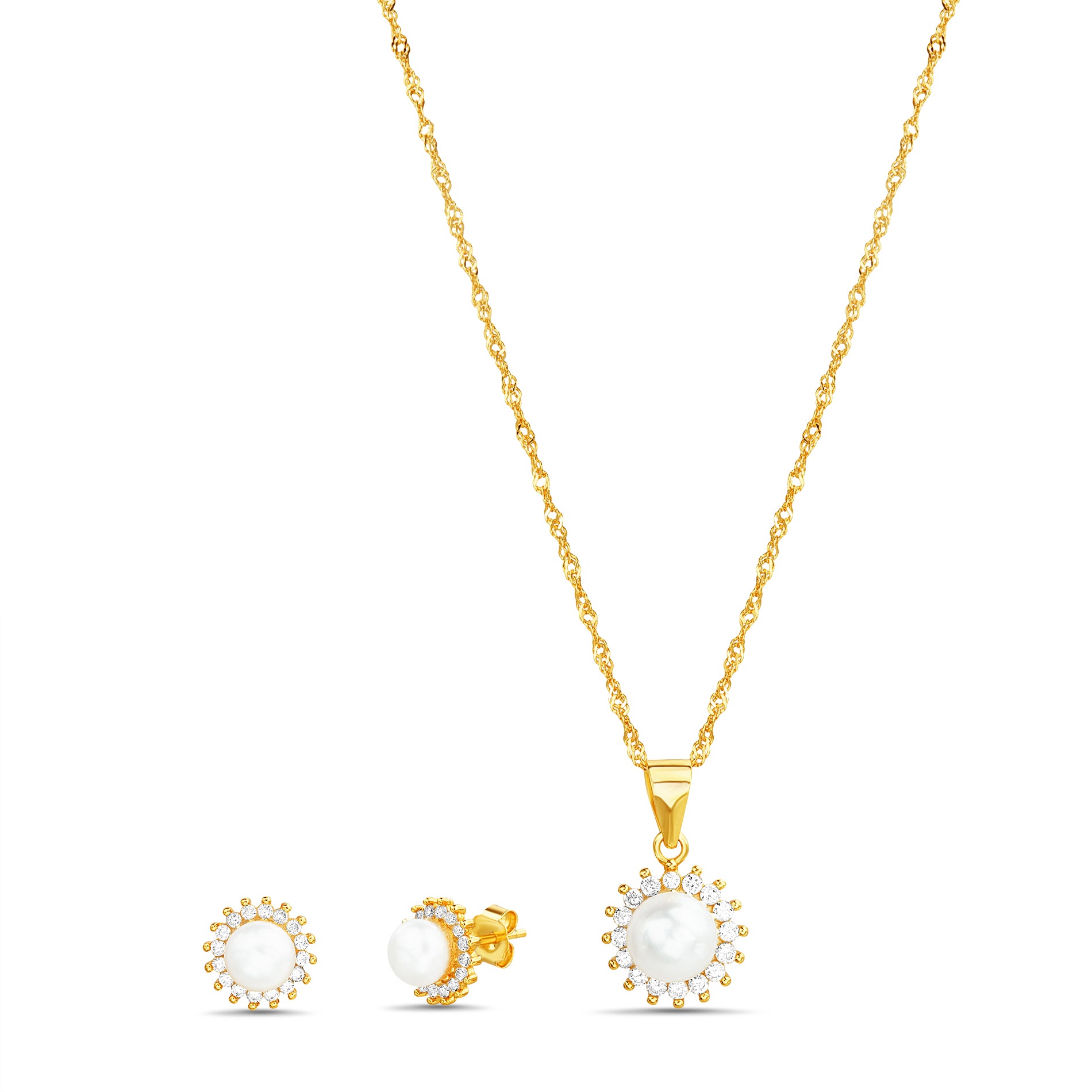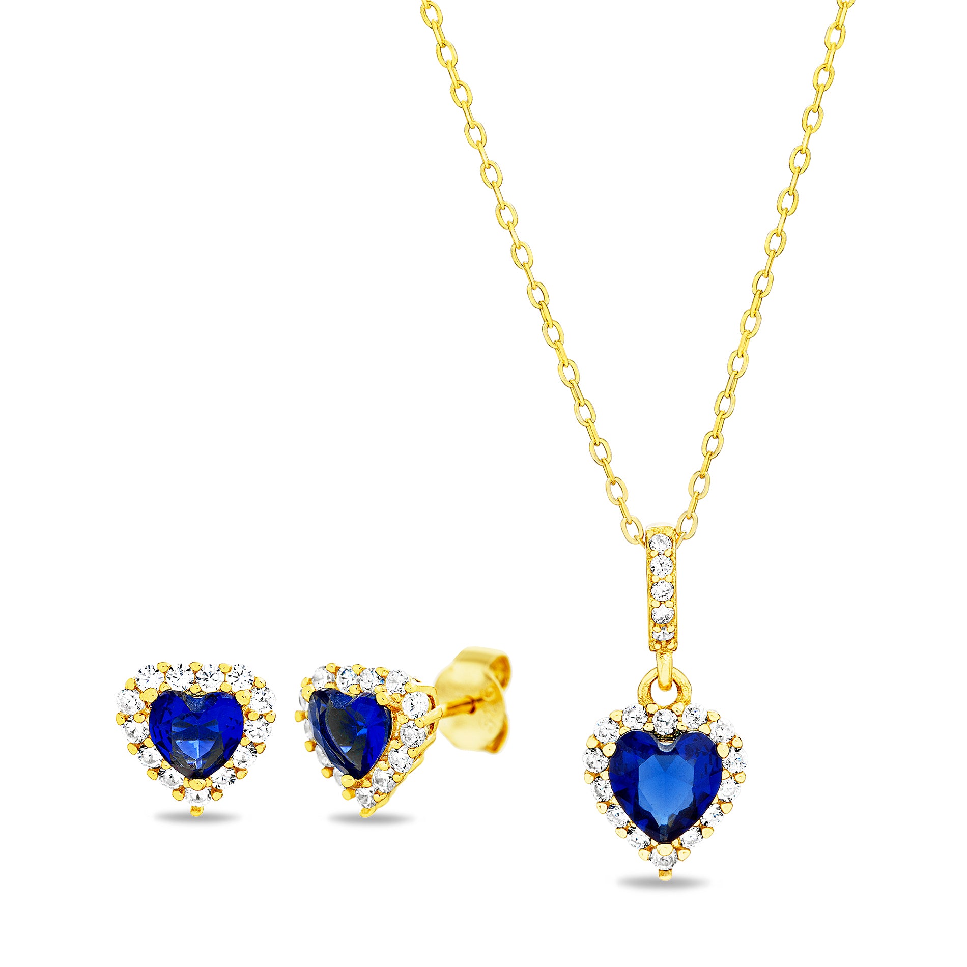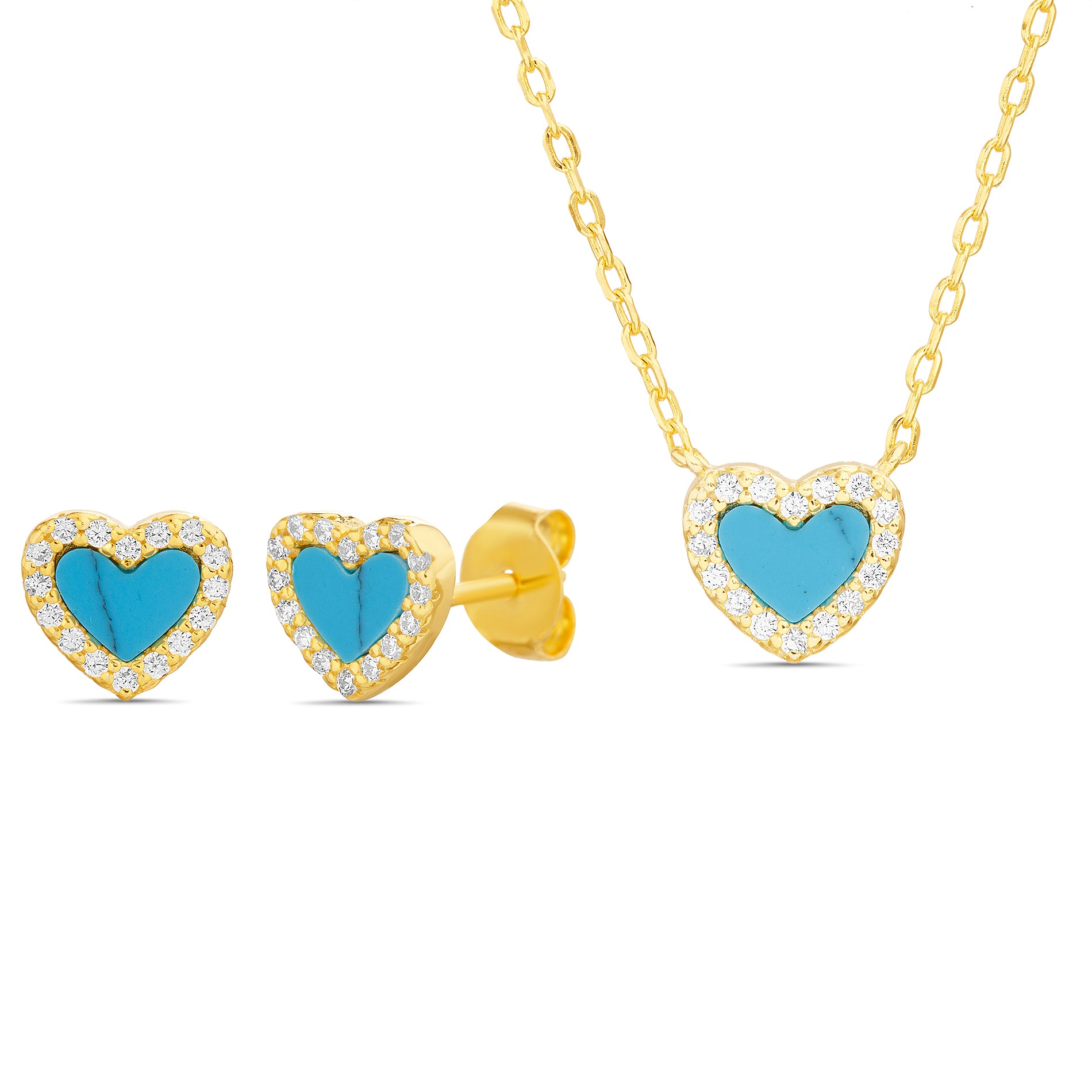 Gold CZ/Turquoise Heart Stud Earring & Necklace Set