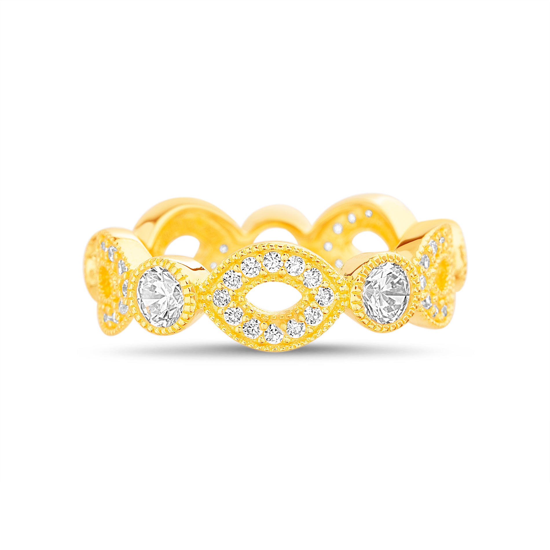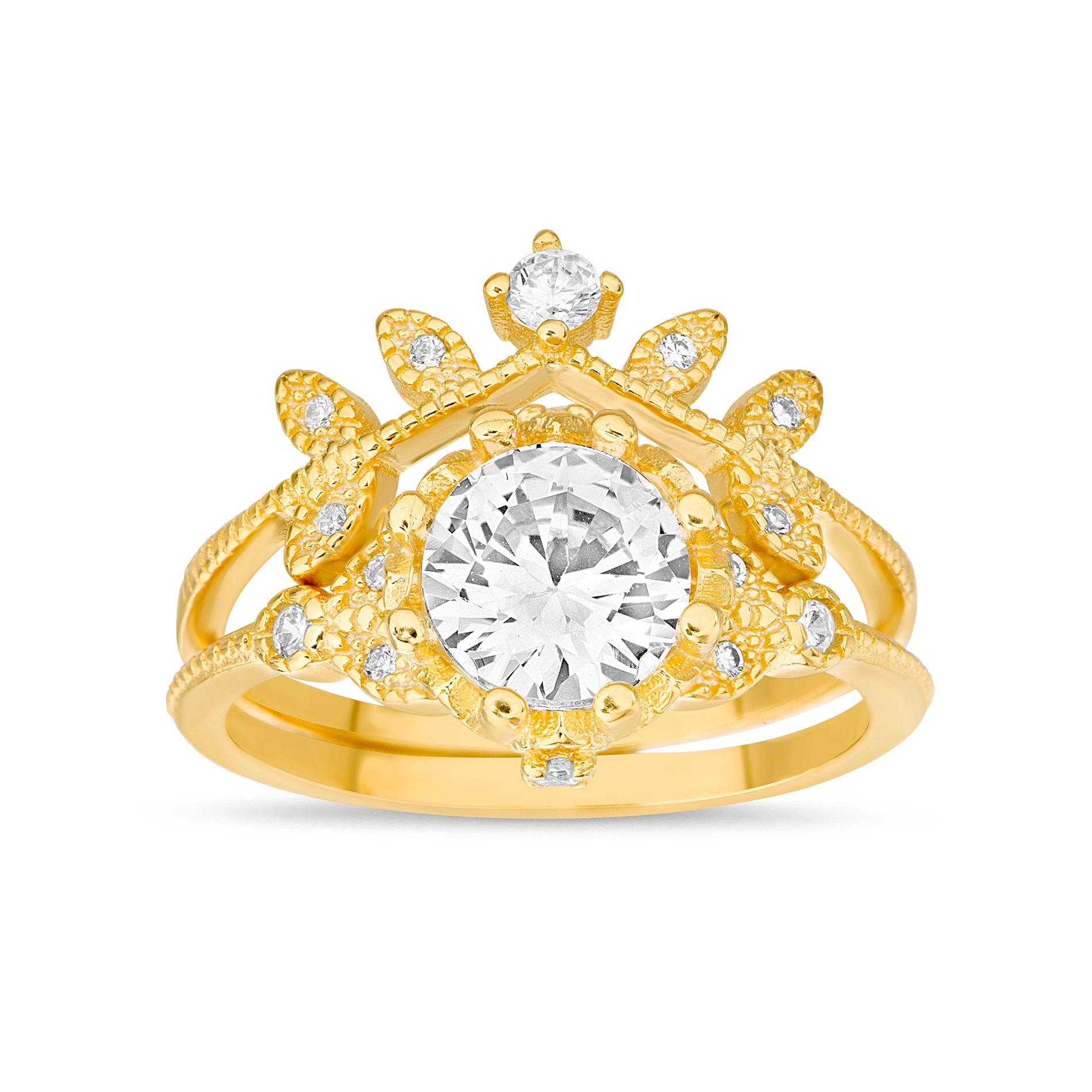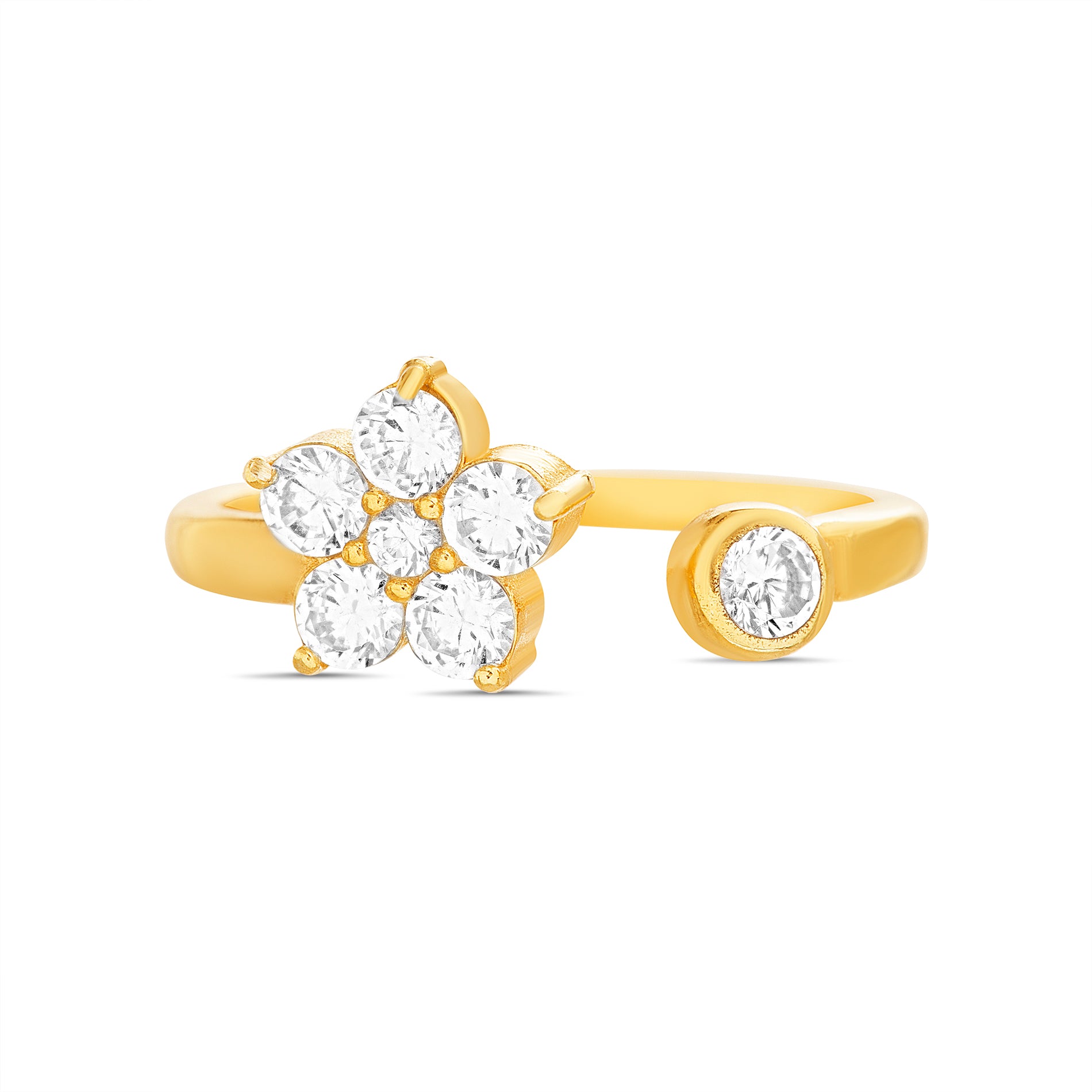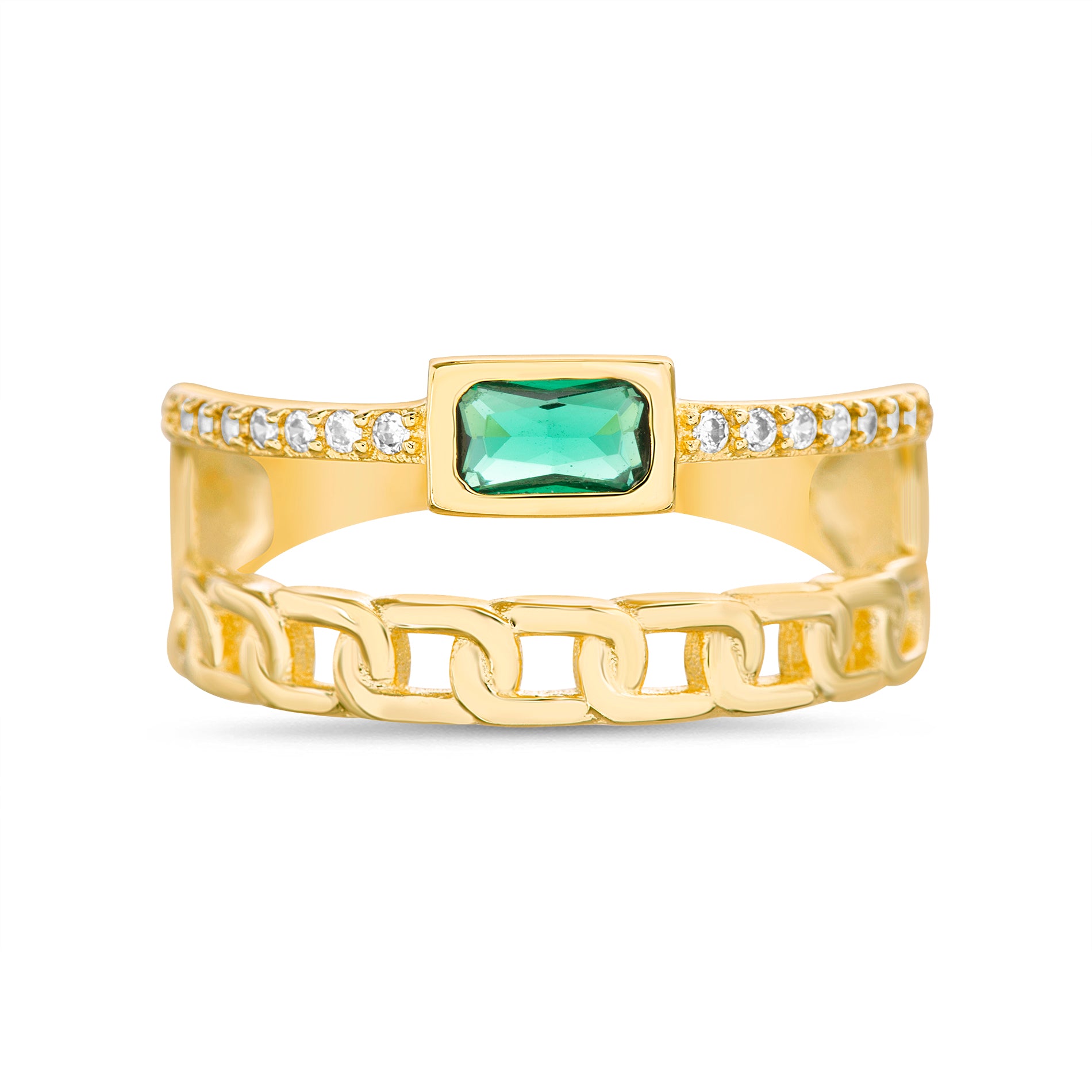 Gold Clear & Emerald CZ Adjustable Open Ring