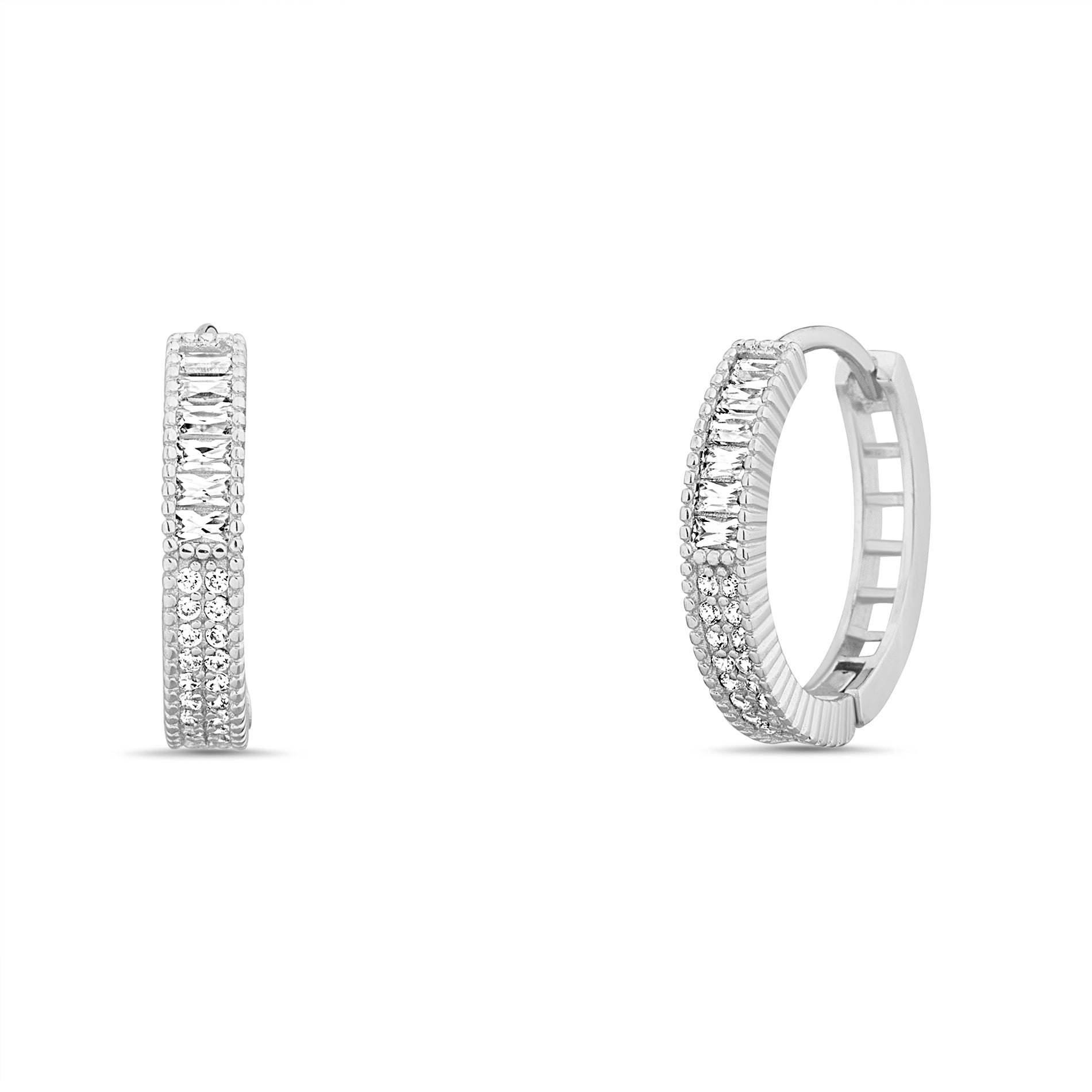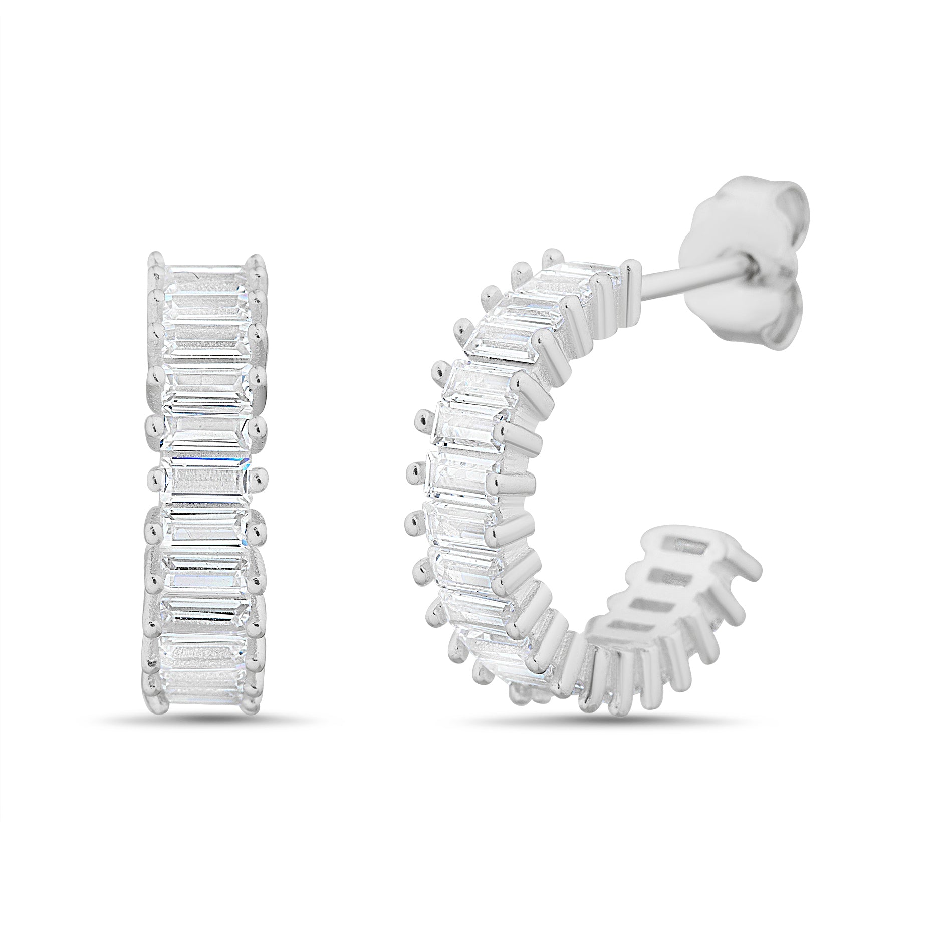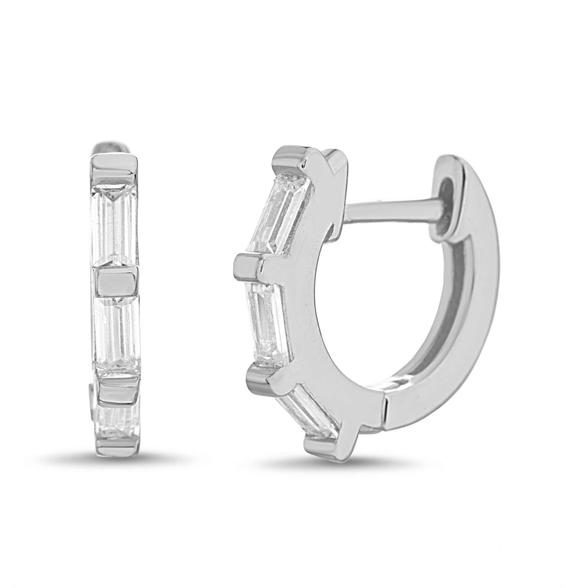 Silver Baguette CZ Hoop Earring
