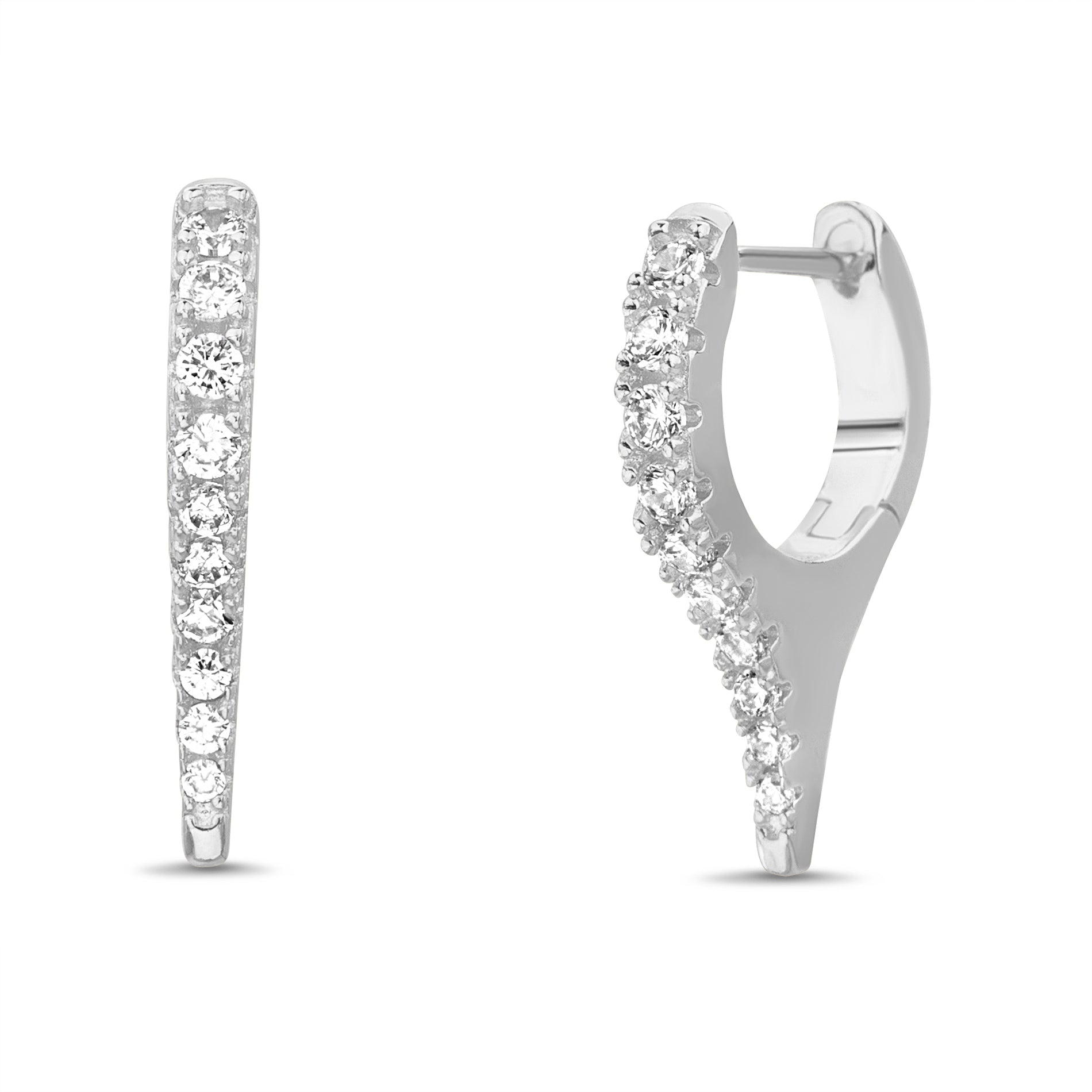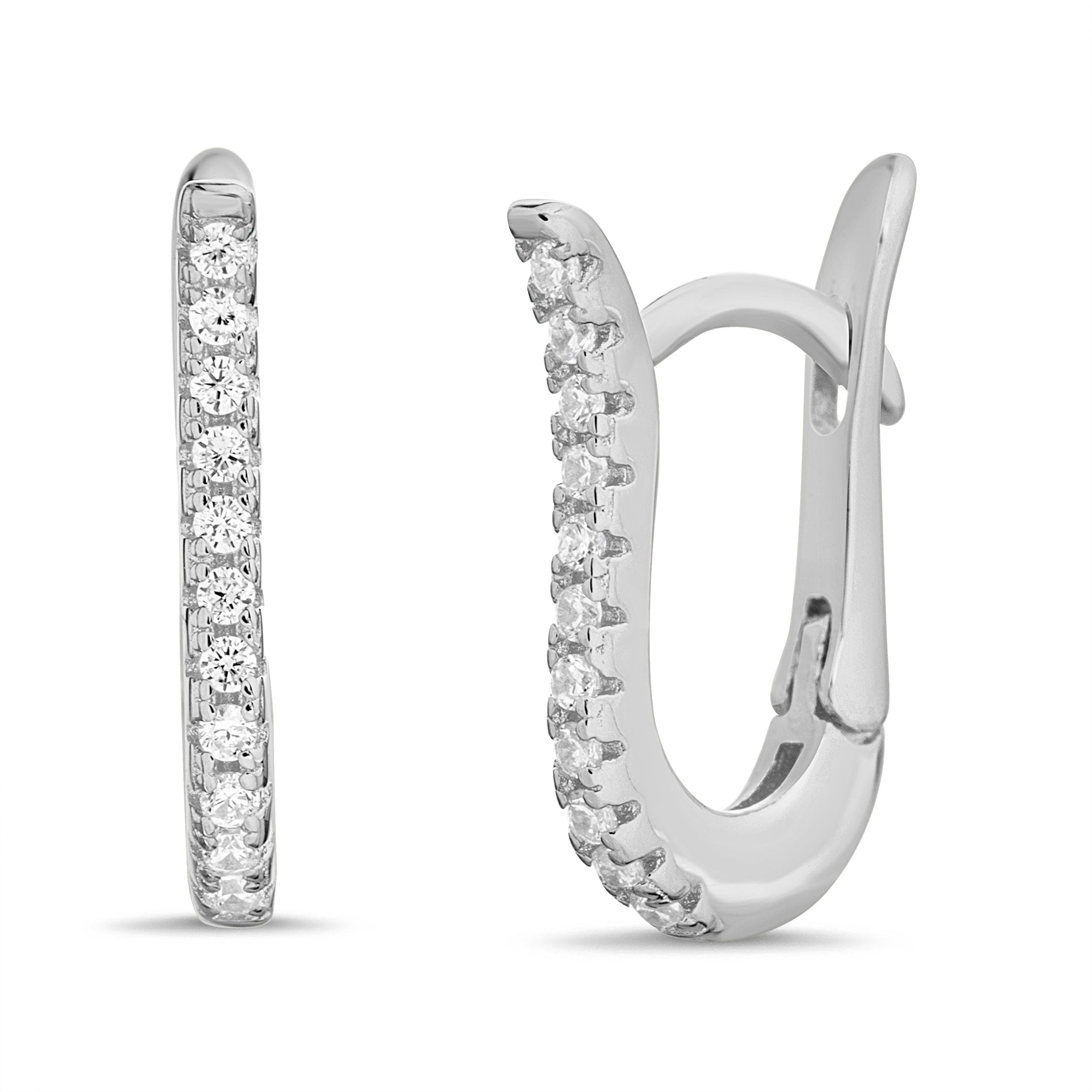 Sterling Silver Rhodium & CZ Clear Hoop Huggie Earring