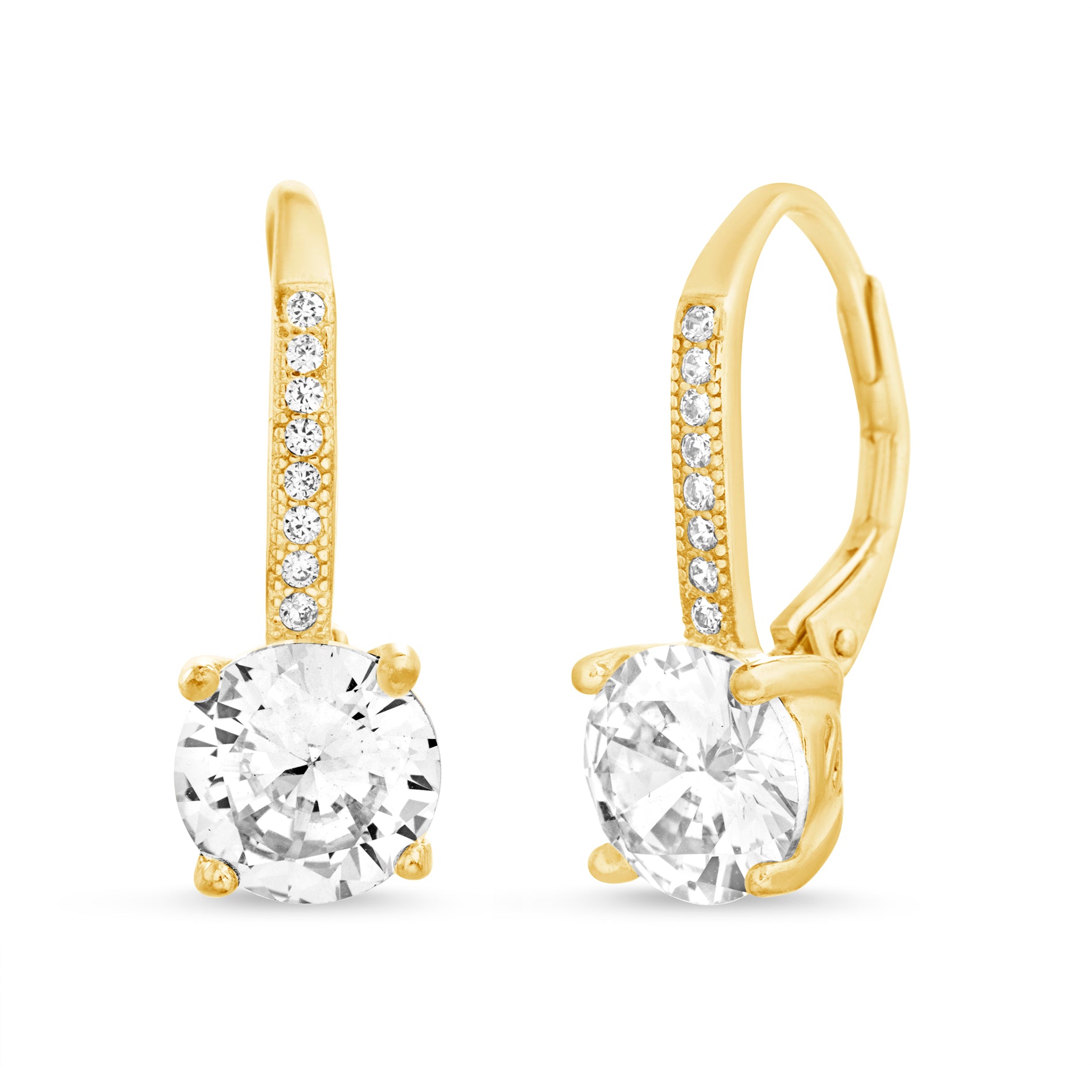 Gold Round CZ Leverbacks