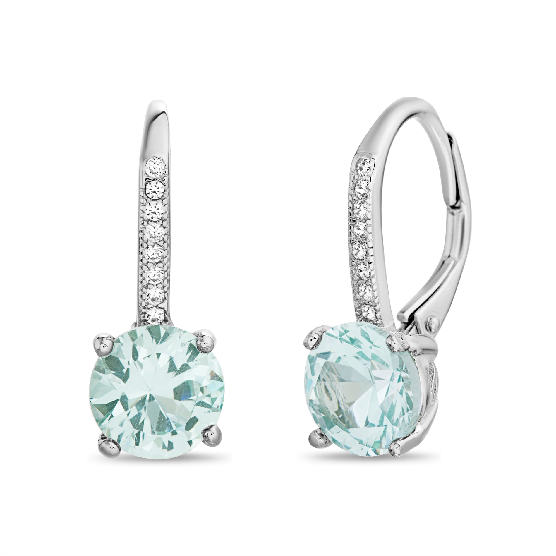 Rose Round CZ Leverback Earring