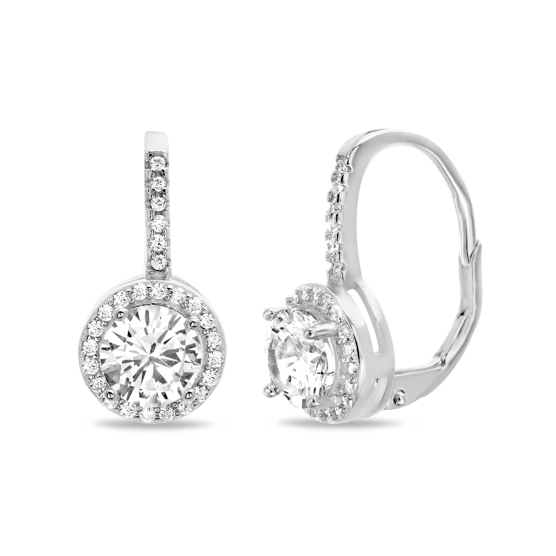 Sterling Silver Rhodium Cz Halo Leverback Earrings