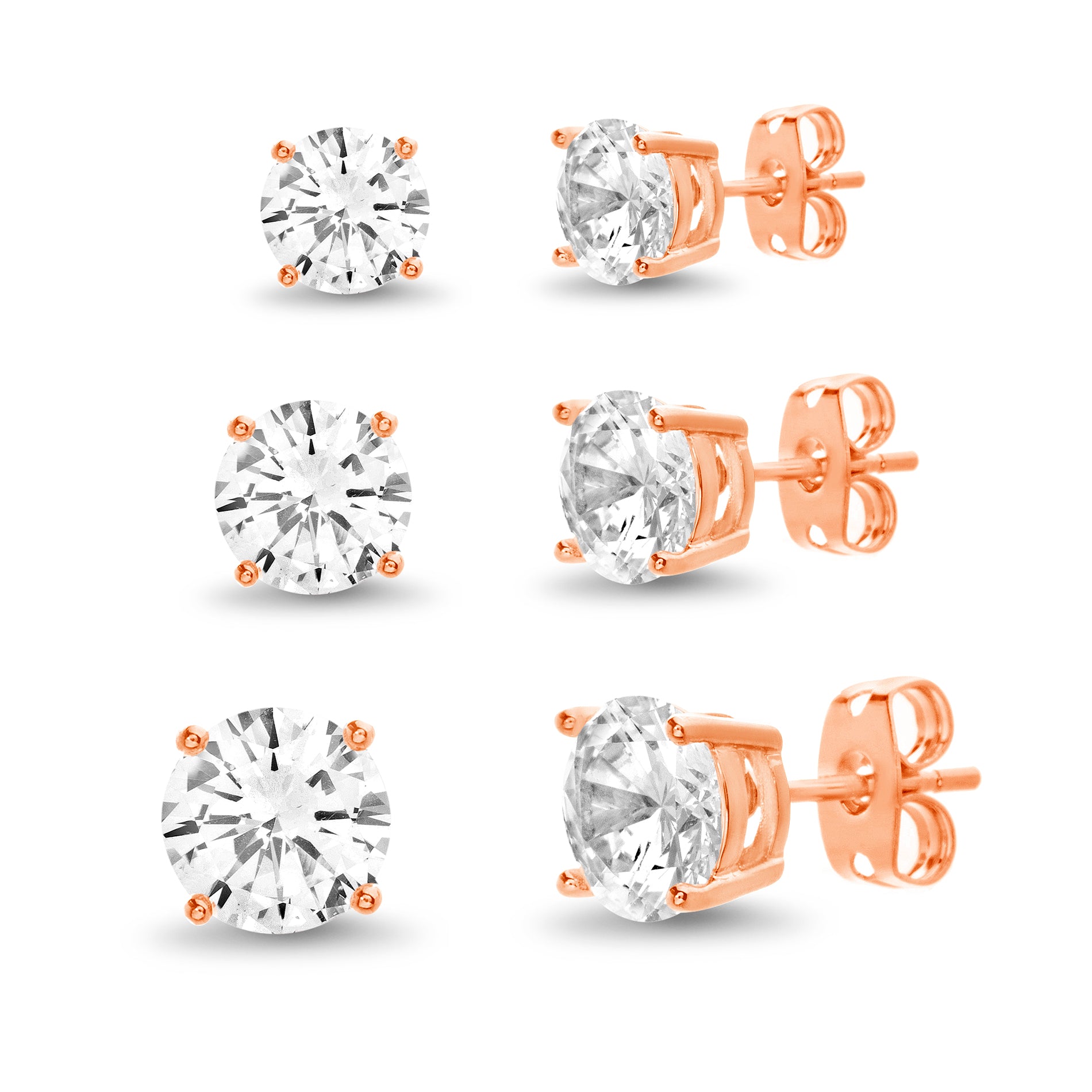 Rose Gold Stud Trio – 4mm, 5mm, 6mm