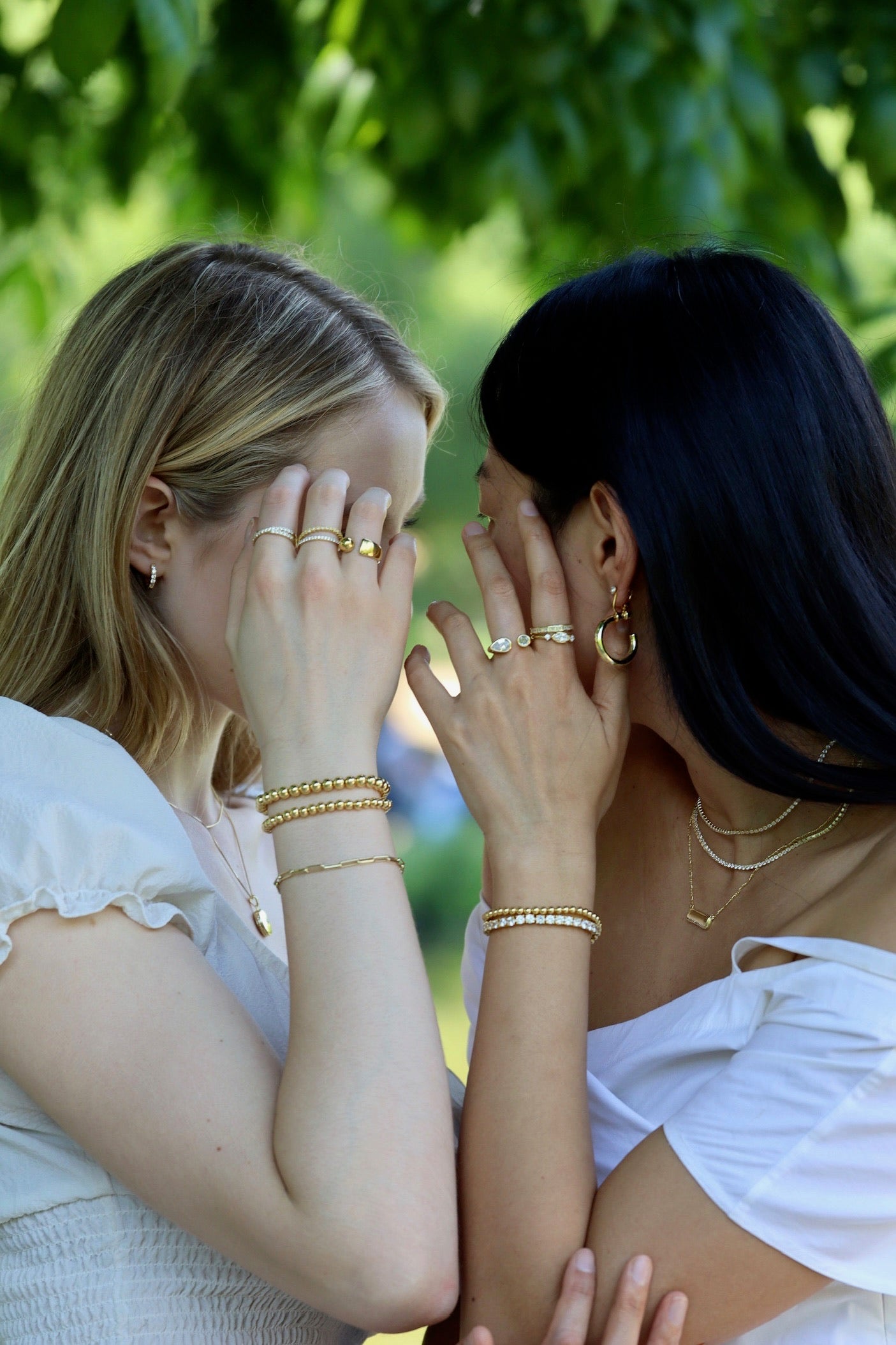 Sterling Silver Gold Opal with Clear CZ & CZ Prong on Beaded Huggie Duo Earrings Set