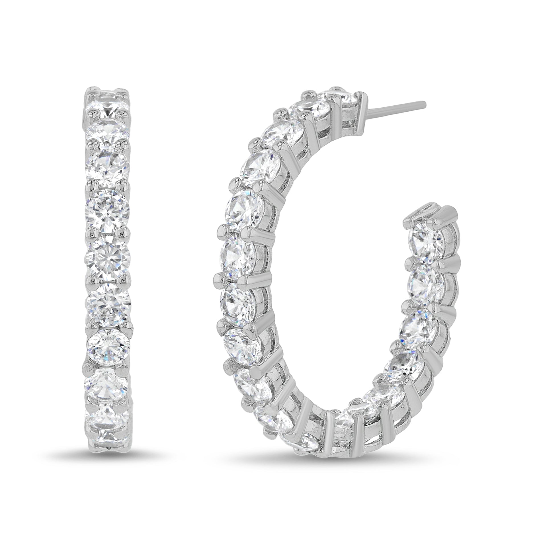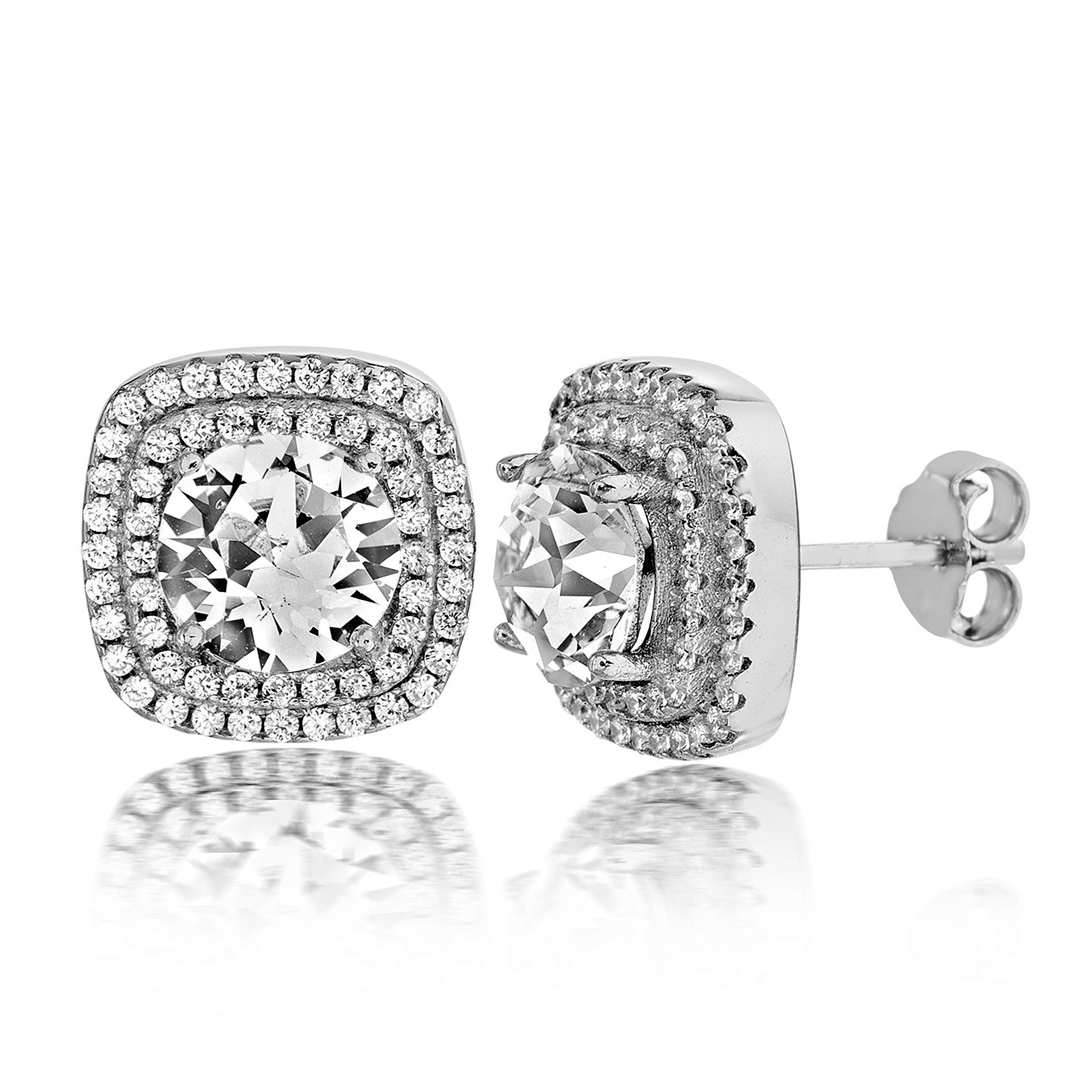 Sterling Silver Rhodium CZ Asscher Cut Earrings