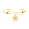 Enhance your accessory collection with the Brass CZ Initial Disc Dangle Charm Bangle. This chic bangle is crafted from premium brass and adorned with dazzling CZ accents, making it an ideal choice for adding a touch of glamour to any special event.