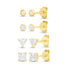 The versatile sparkle of this Sterling Silver Gold-Plated Stud Earrings Set makes it perfect for mixing, matching, and styling every day. Featuring lustrous yellow gold plating, each set is adorned with shimmering cubic zirconia stones and elegant shapes like hearts, stars, bezels, and classic cuts—some accented with luminous opal for an extra touch of charm.